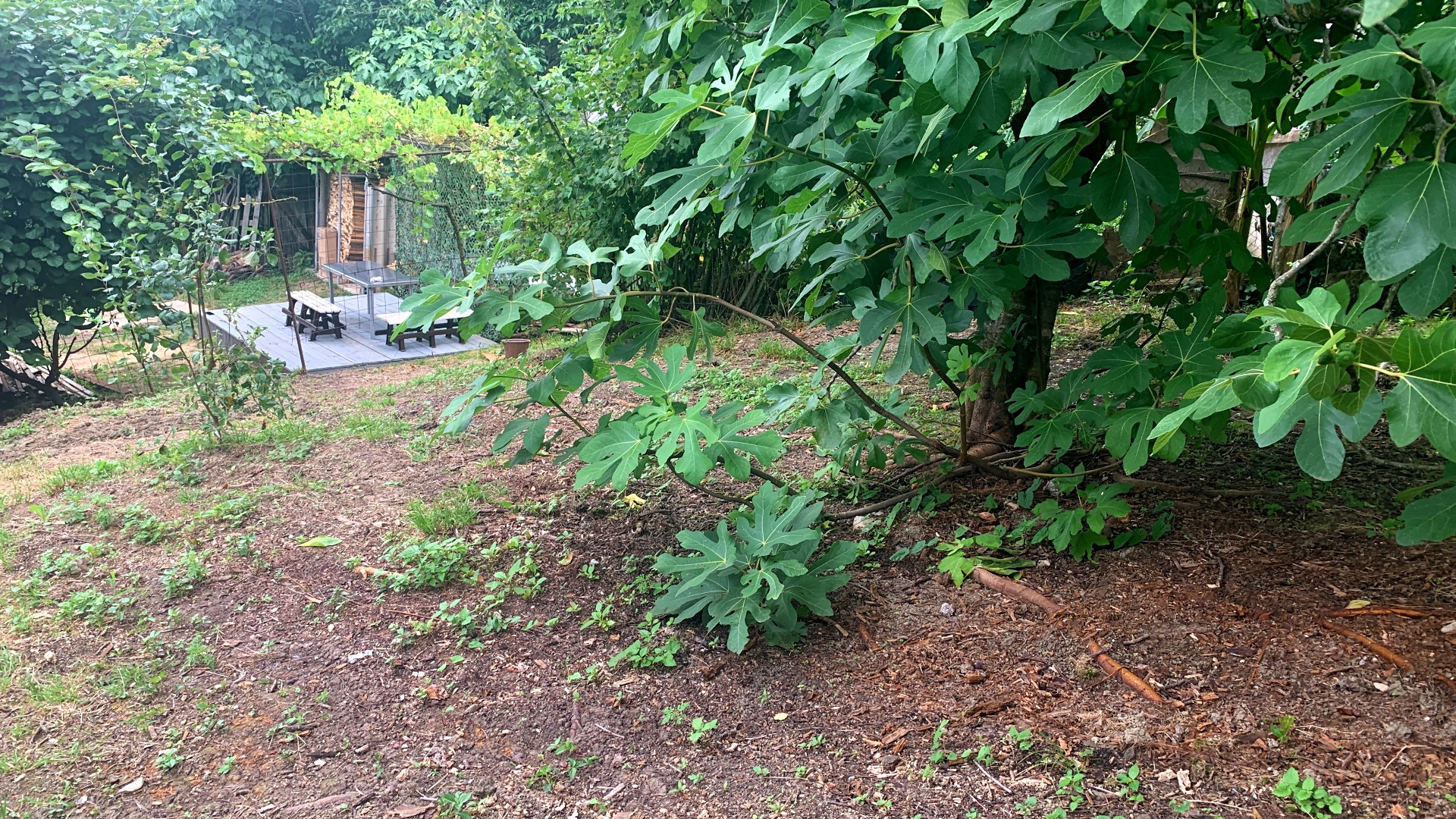 есть зона барбекю и фруктовые плодоносящие деревья: хурма,