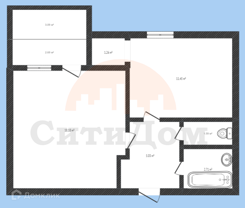 Санузел 1 раздельный