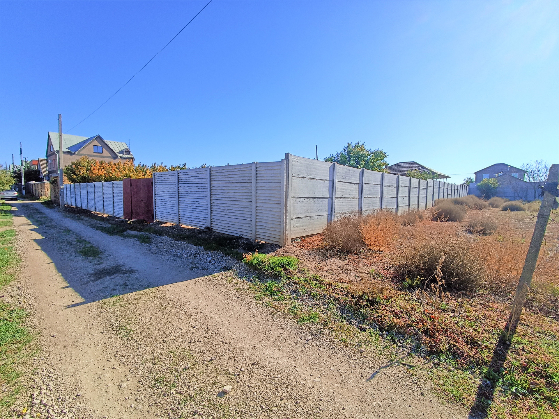 Участок по периметру обнесён еврозабором с железными воротами.