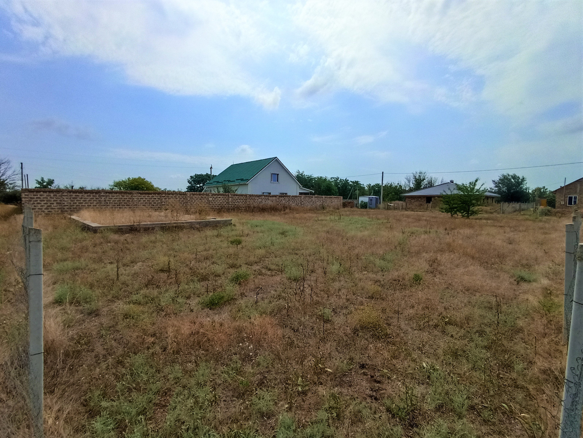 Участок по периметру огорожен сеткой - рабицой. По границе участка вбиты садовые бетонные столбики из мелкозернистого бетона М-400.