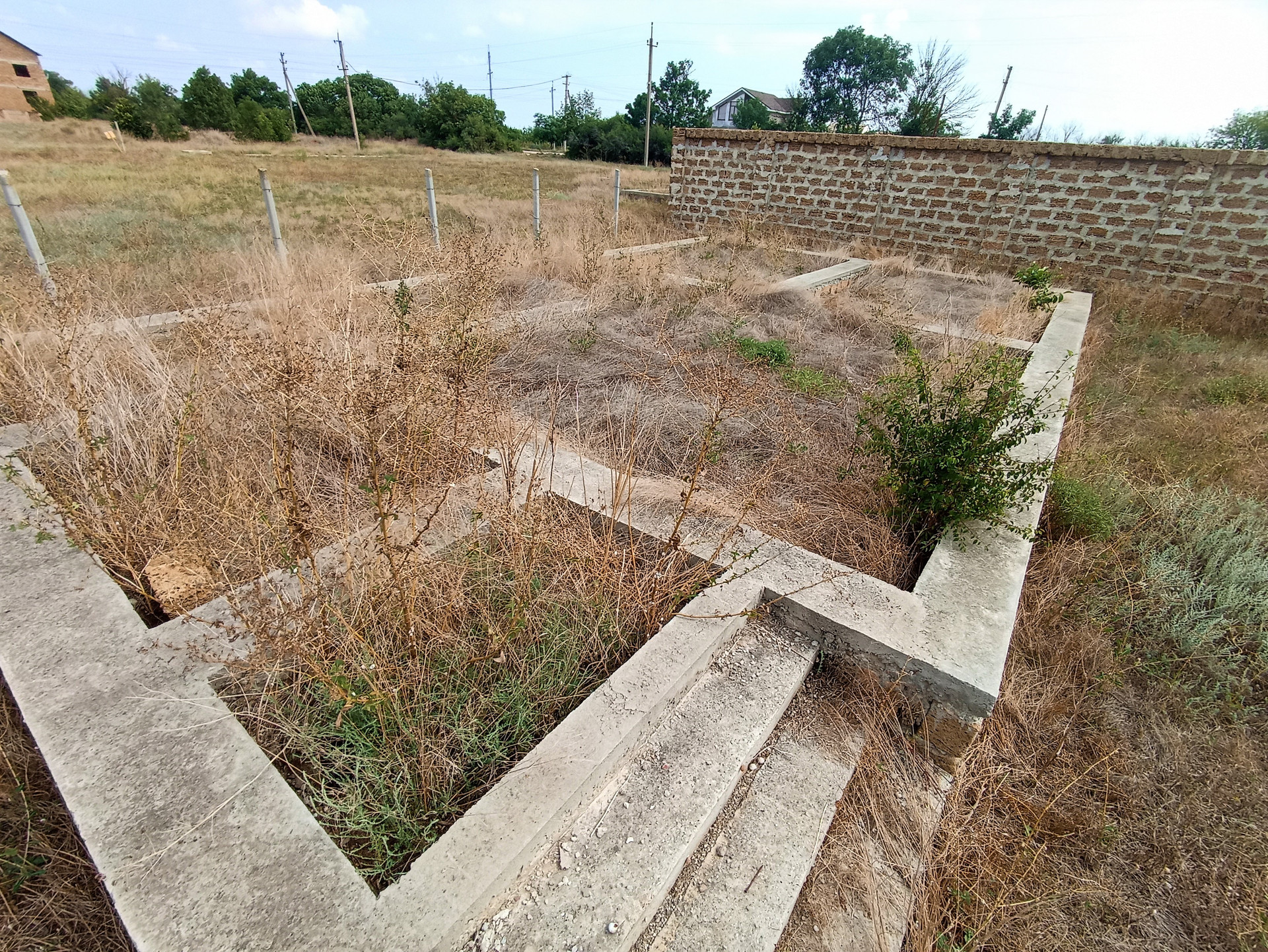 На участке заложен железобетонный фундамент 65 м.кв. под гостиничный домик.