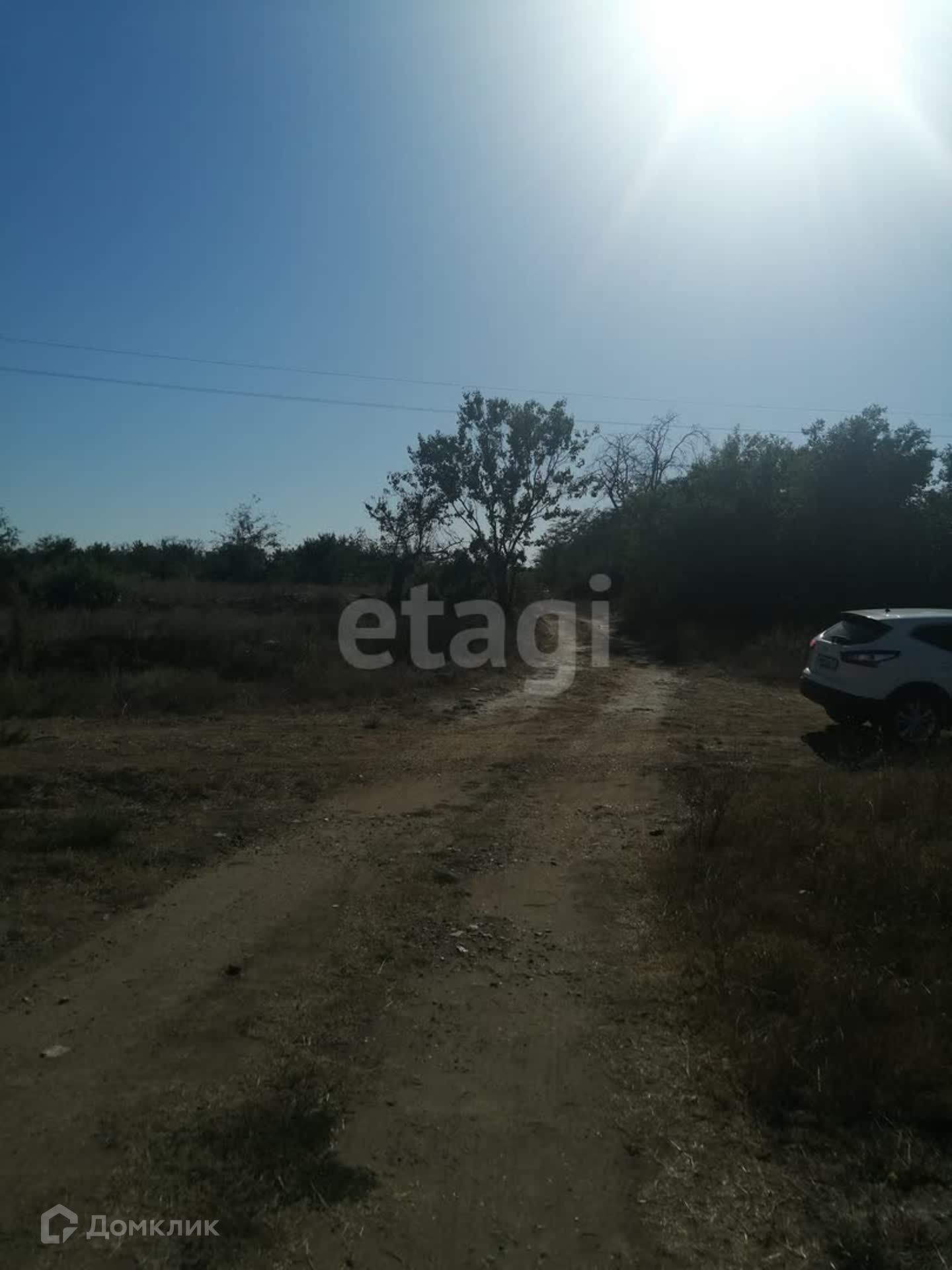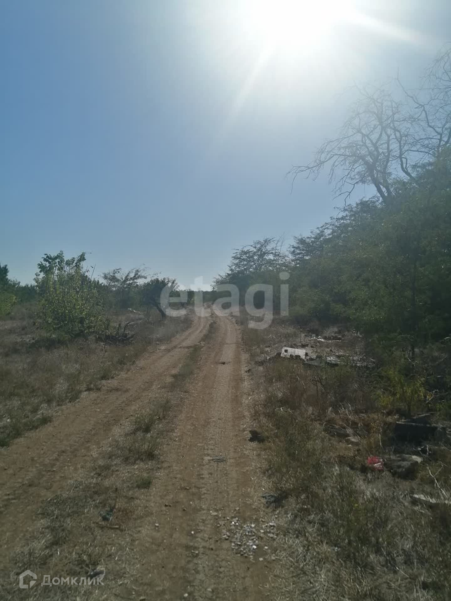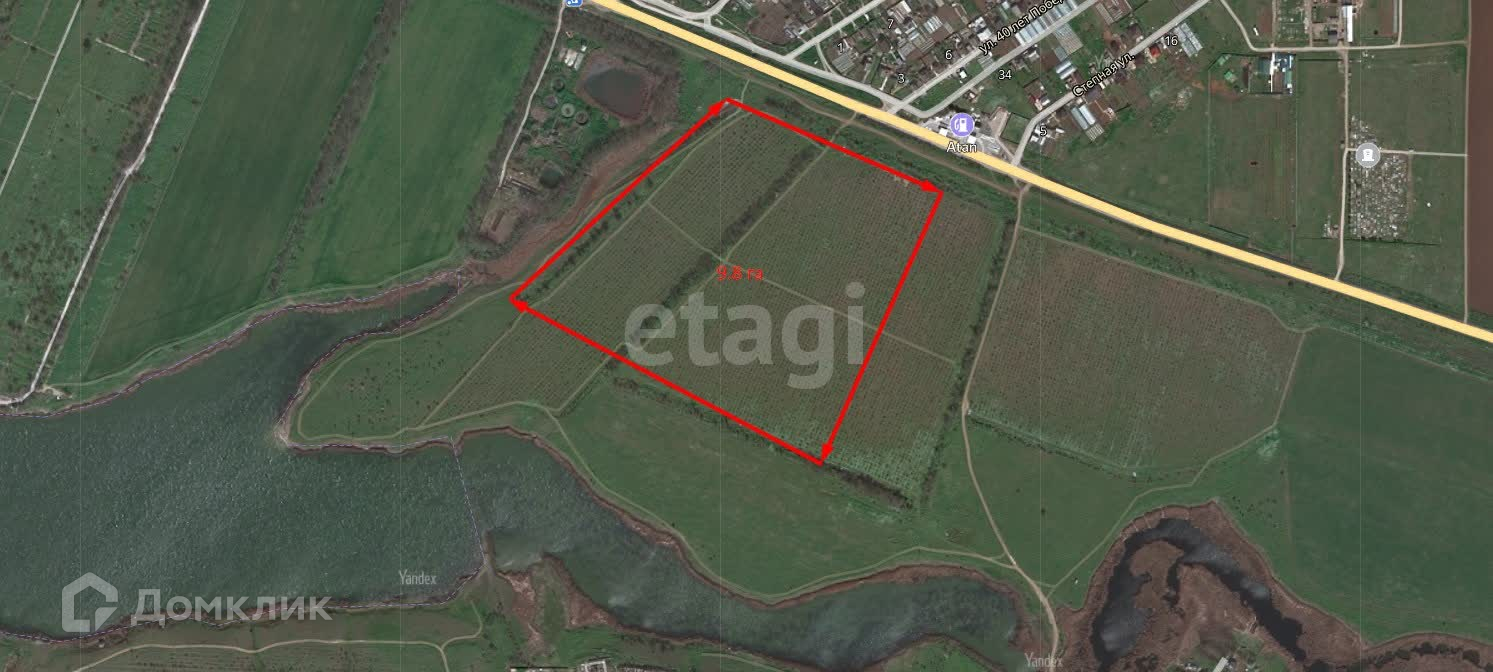 Находится на первой линии со стороны Симферополя около заправки Отан. Участок состоит из 4х участков между дорогой и озером. Участок засажен персиковым садом.