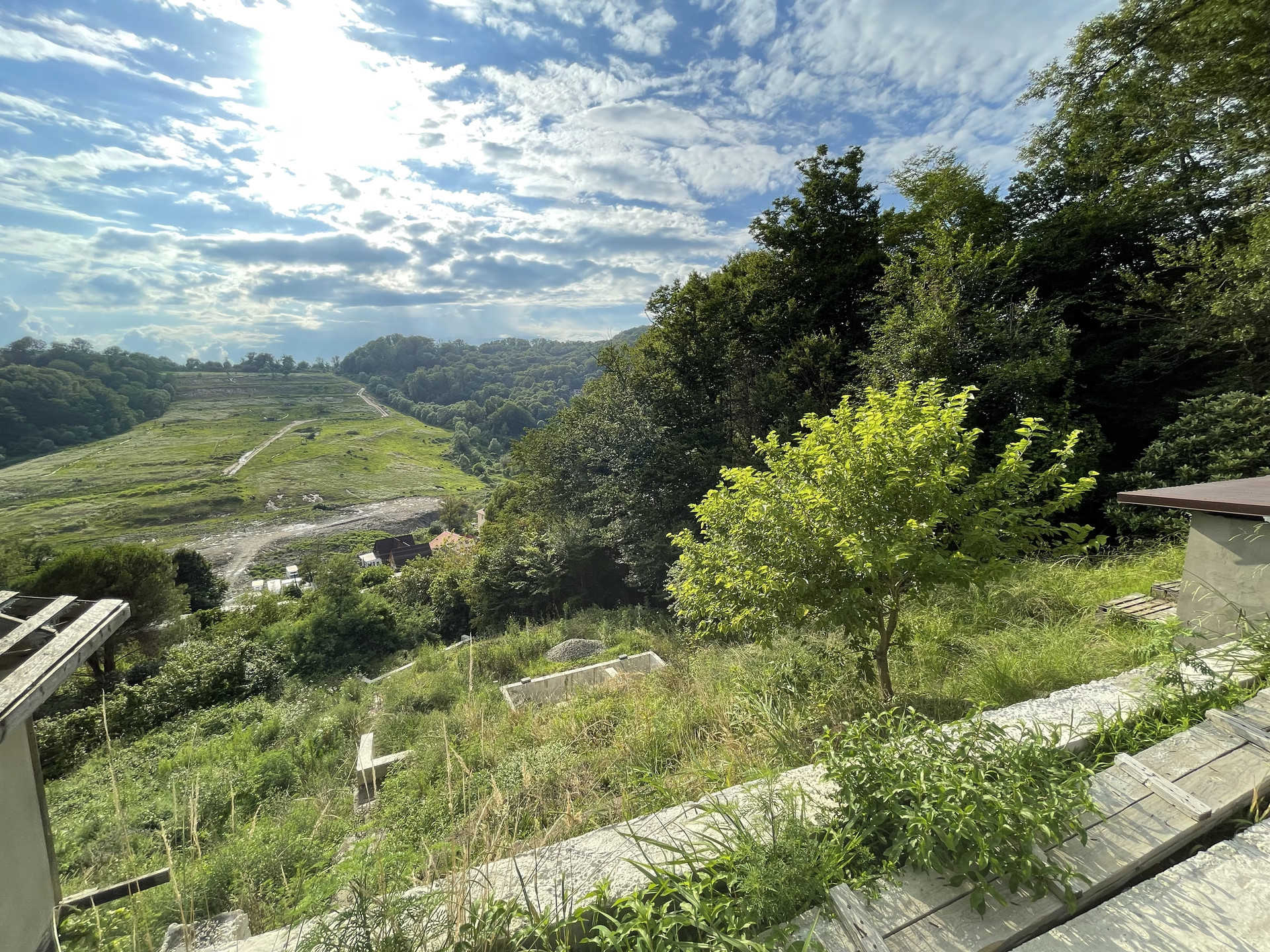 Участок площадью 609 кв.м на праве собственности, расположен на самой высокой точке улицы. Великолепный живописный вид с любой стороны дома. Во дворе бассейн (4м Х 7м),основные работы проделаны (залита чаша и пролиты бетонные ступени внутри),рядом помещение для оборудования. На участке также проведены основные ландшафные работы, возведены 3 опорные стены по склону из бетона соблюдая все технологии относительно состава почвы на местности.