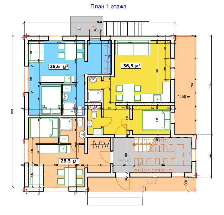 Дом рассчитан на проживание большой дружной семьи, состоящей из нескольких поколений. У каждого будет своё приватное пространство для жизни в виде отдельной квартиры. Всего в доме семь отдельных квартир. В каждой квартире свой санузел, балкон и лоджия. На каждую квартиру установлены счетчики на газ, свет, тепло и воду. Установлены домофоны. Заведены интернет и телевидение.