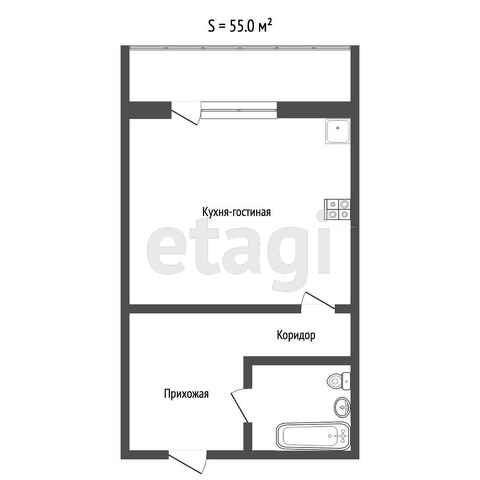 Общая площадь 55 м2
