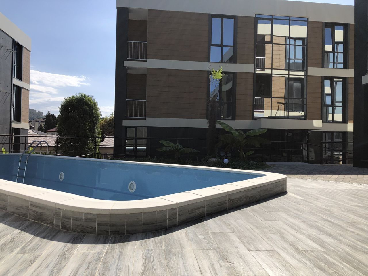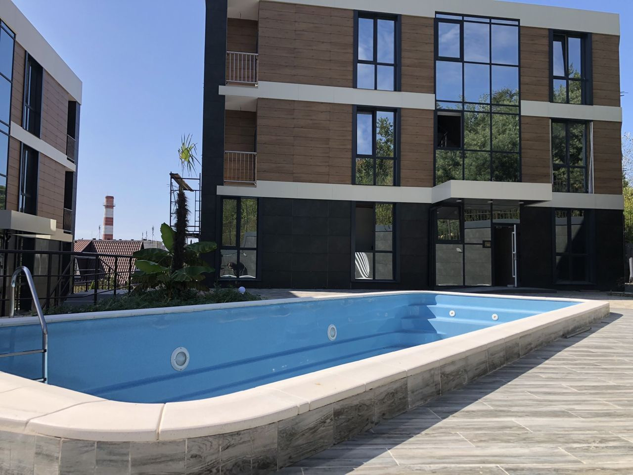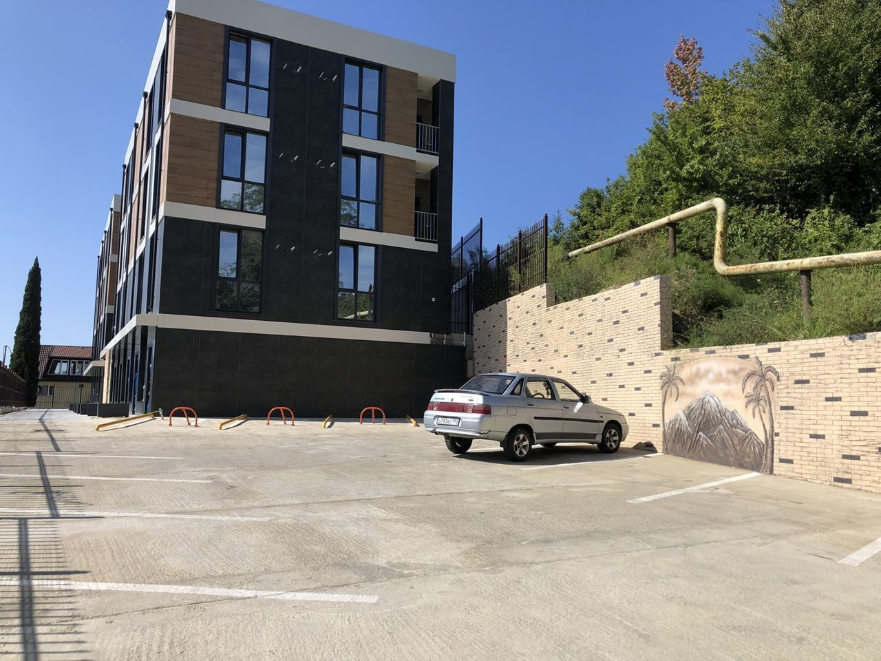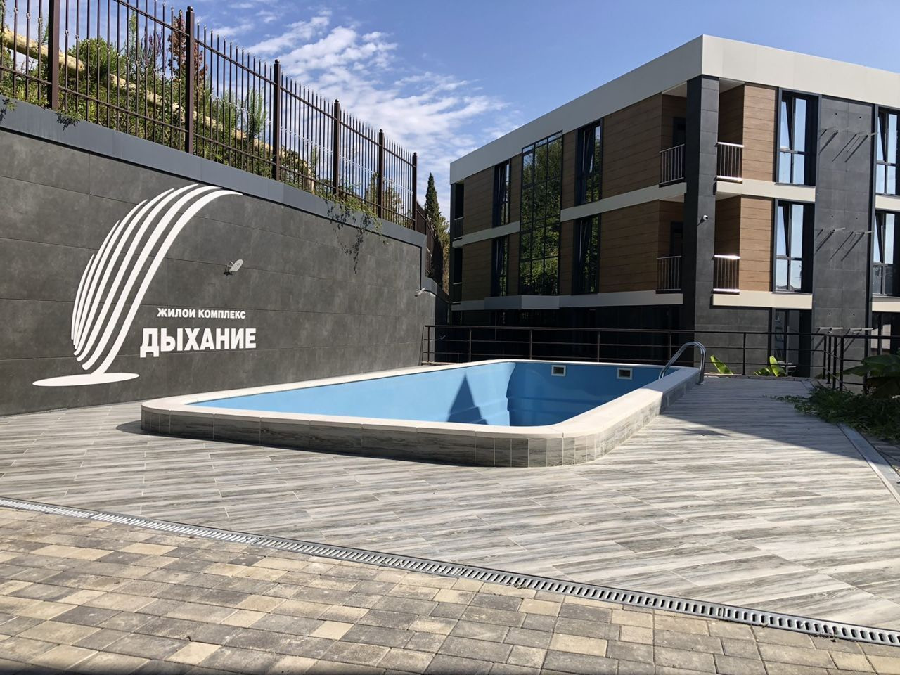 Парковка охраняемая за шлагбаумом, территория комплекса закрыта. На территории есть детские и спортивные площадки, а также бассейн.