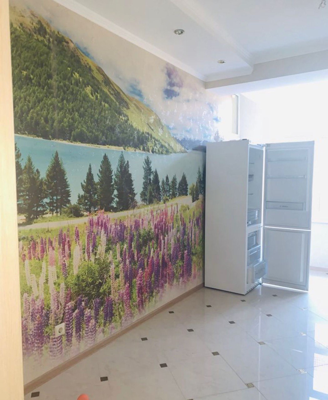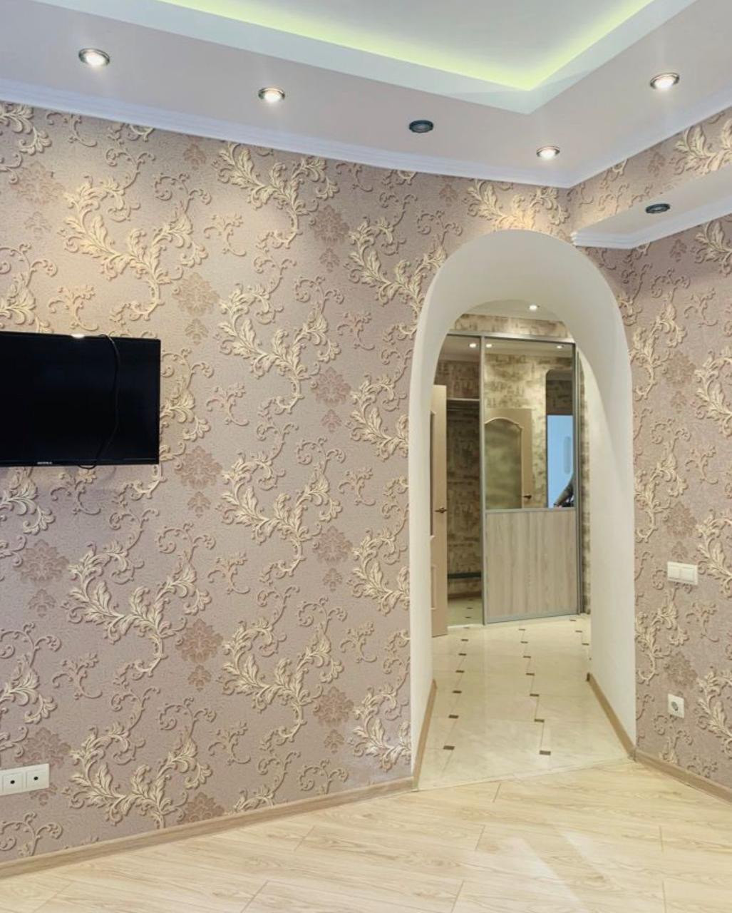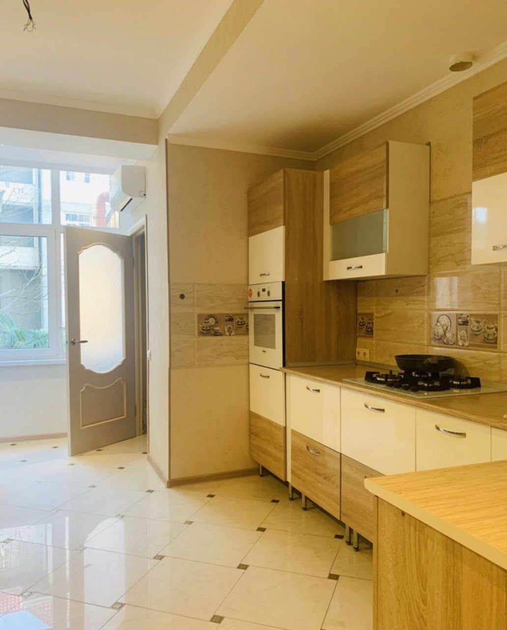 В квартире есть полностью оборудованная кухня с холодильником, духовкой, варочной поверхностью, вытяжкой и посудомоечной машиной. Обеденная зона состоит из большого круглого стола, вмещающего всю семью и гостей. Санузел раздельный, ванная комната оснащена ванной, раковиной и зеркалом.