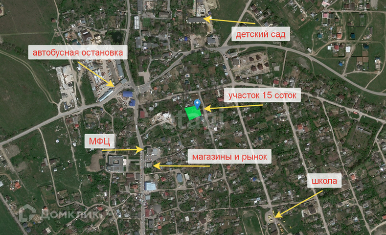 Участок 15 соток ИЖС, ровный, огороженный. На участке несколько хоз. построек - сарай, гараж, столярная. Растут плодовые и ореховые деревья, виноград. Расположение участка очень выгодное, до центра поселка всего 5 минут пешком.