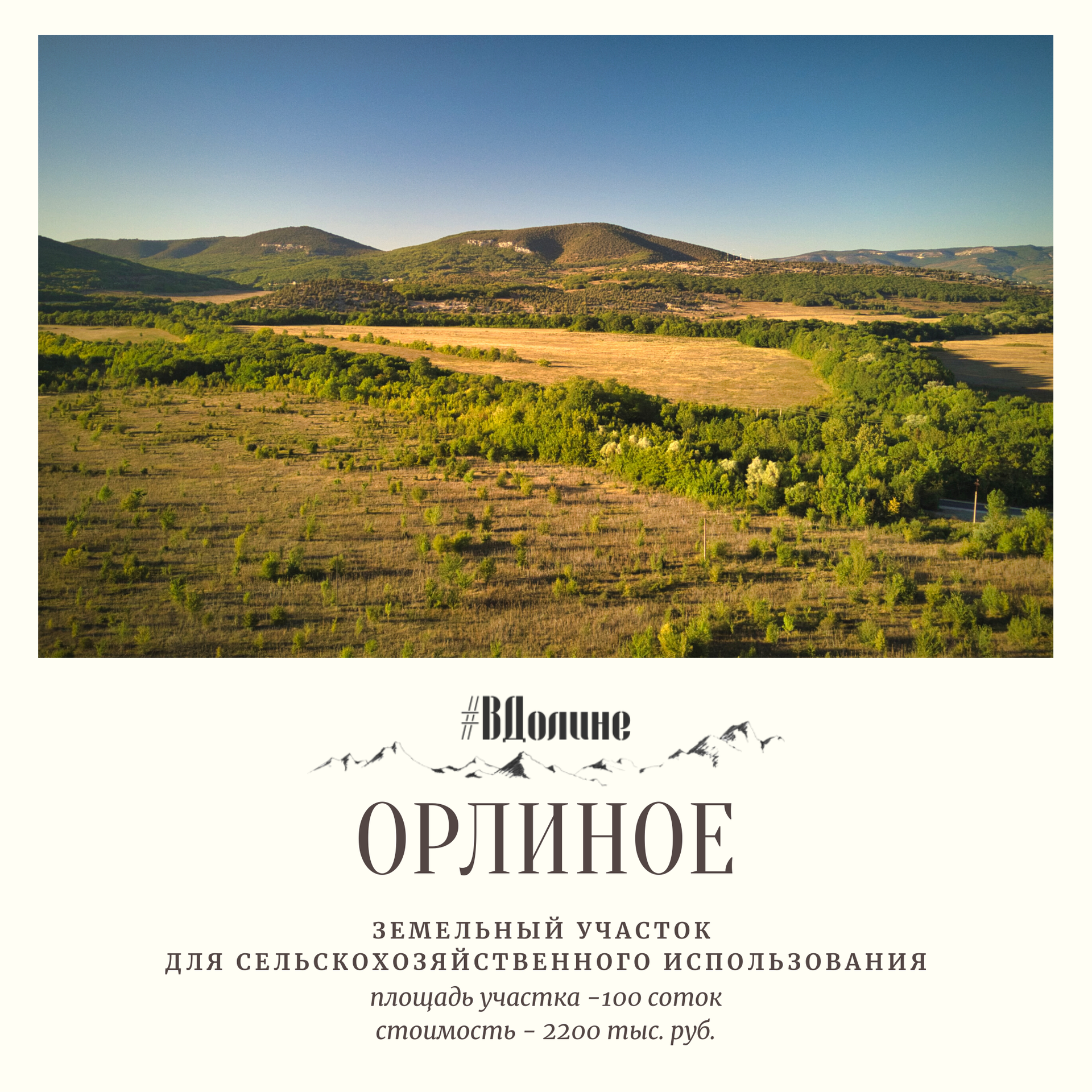 Участок находится в плоскости долины, идеально ровный. Электричество по федеральной программе. Транспортная доступность: великолепная новая дорога до Севастополя (30 минут езды), до райцентра Орлиное (5 минут езды), до моря (15 минут езды), кроме того между селом и Севастополем курсирует рейсовый автобус.