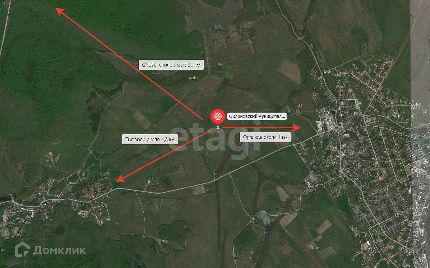До асфальтовой автодороги Орлиное-Тыловое около 500 метров.