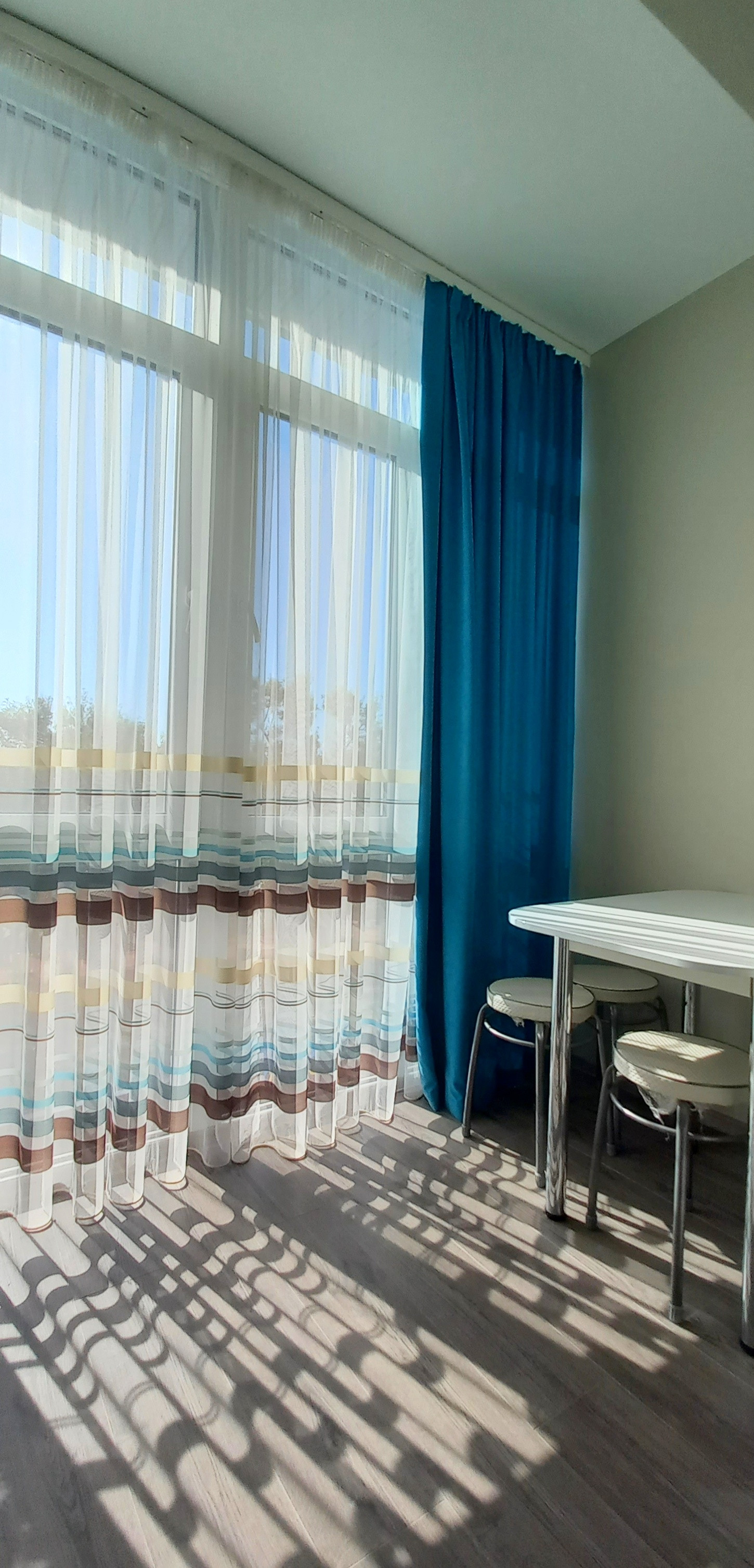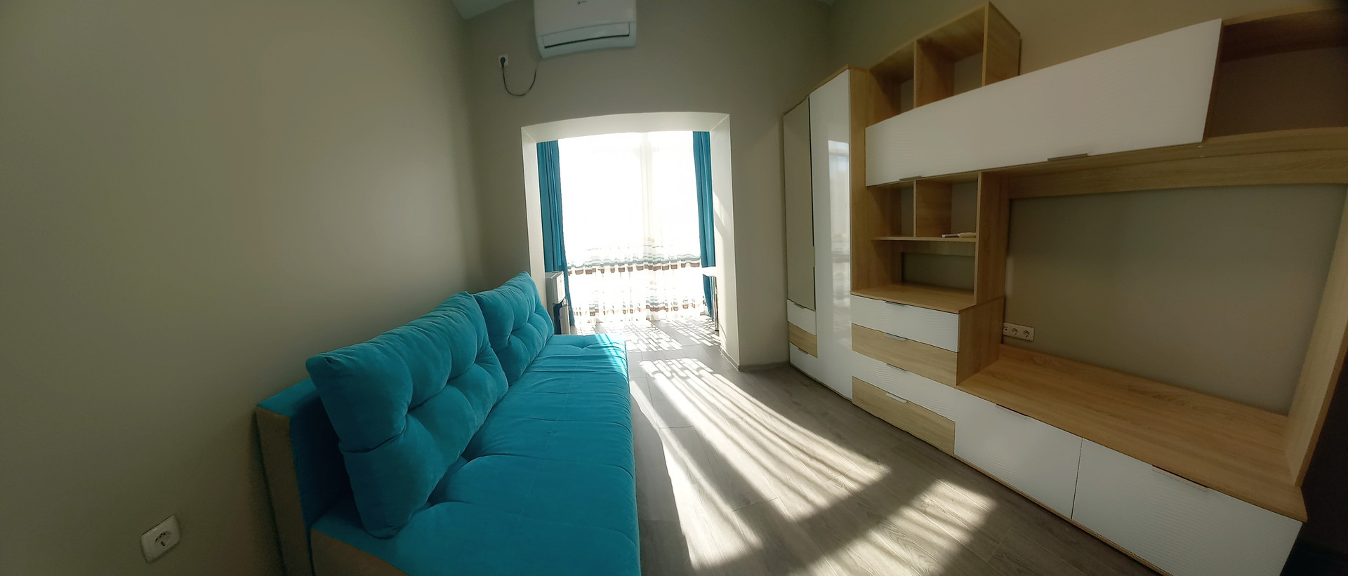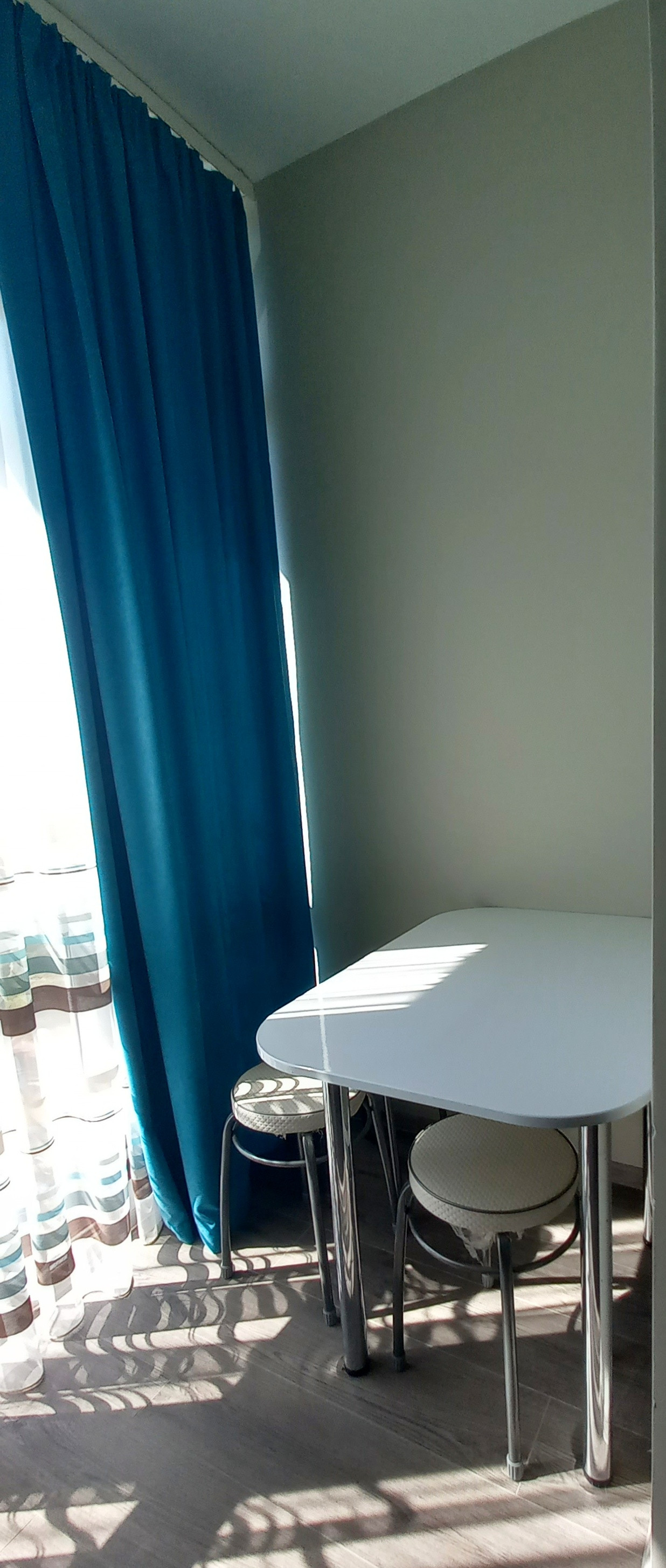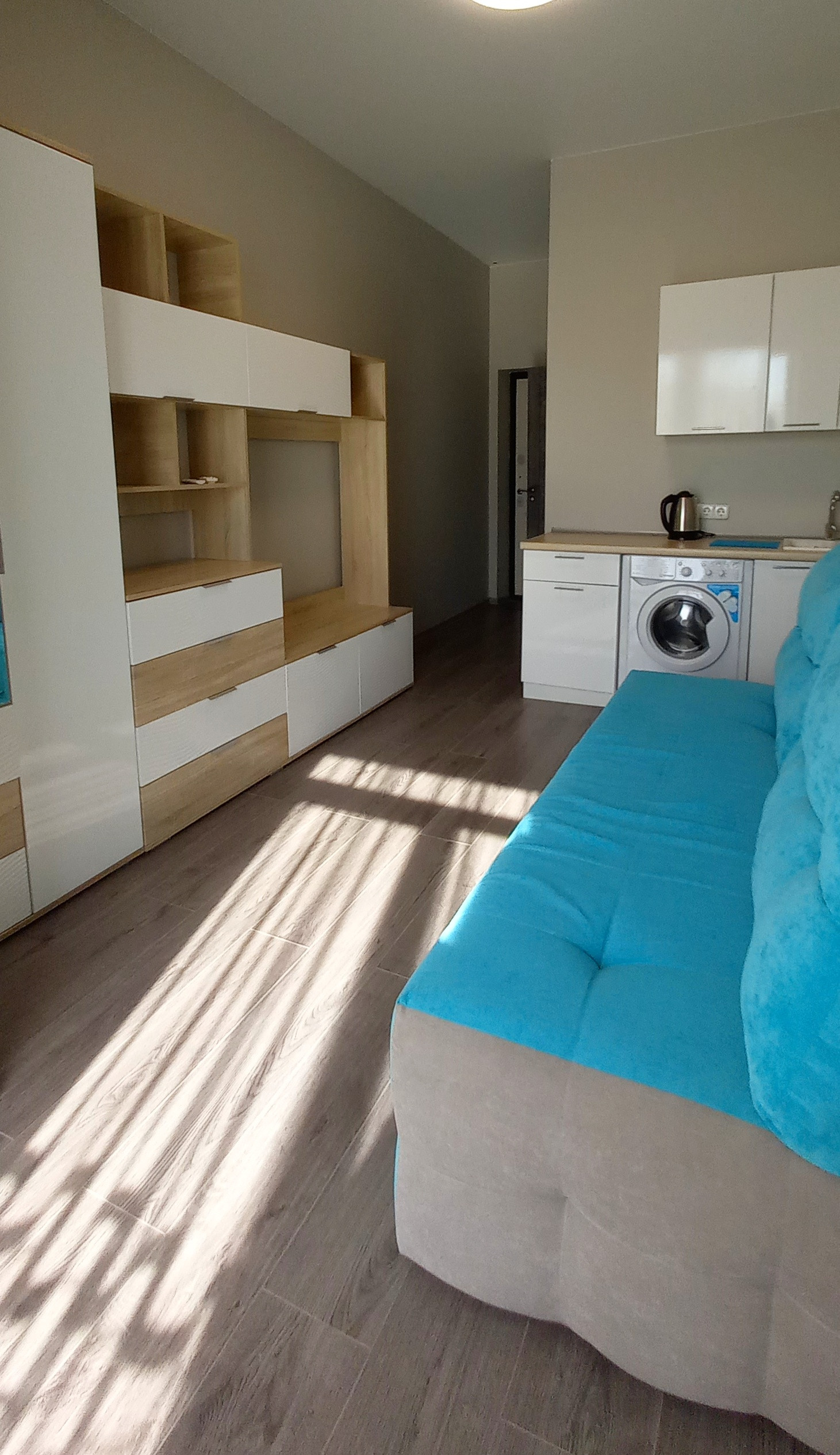 Состояние отличное, сделана качественная отделка, в комнате, удобно размещена мебель и быт.техника - небольшой кухонный гарнитур, раскладной диван, обеденный стол и холодильник – на лоджии с панорамными окнами . Сан.узел совмещенный, установлен бойлер, раковина, душевая отделена простенком, отделка - керамической плиткой. Апартаменты подходят для круглогодичного проживания, отопление за счет кондиционера + теплые полы. В апартаментах, постоянно не проживали, практически не сдавали, ремонт свежий, старались сделать стильно и красиво.