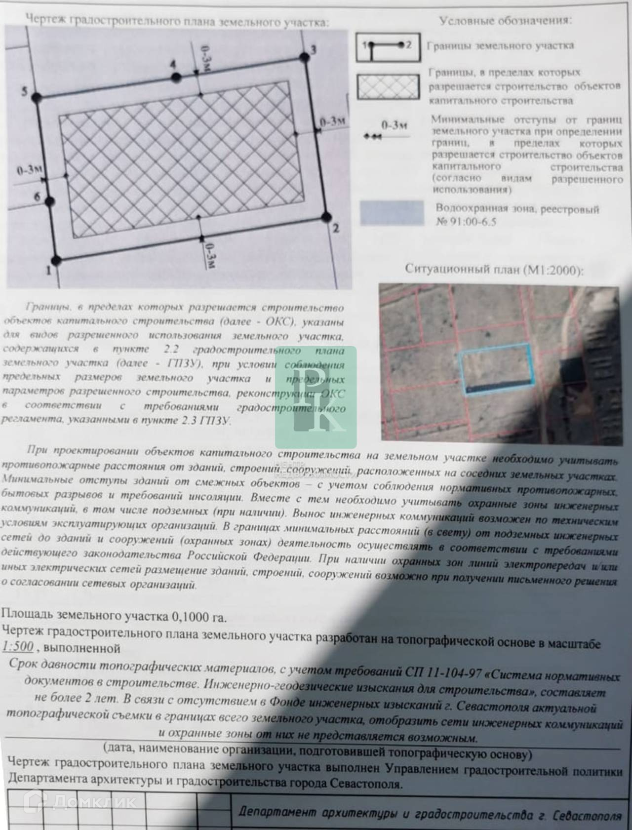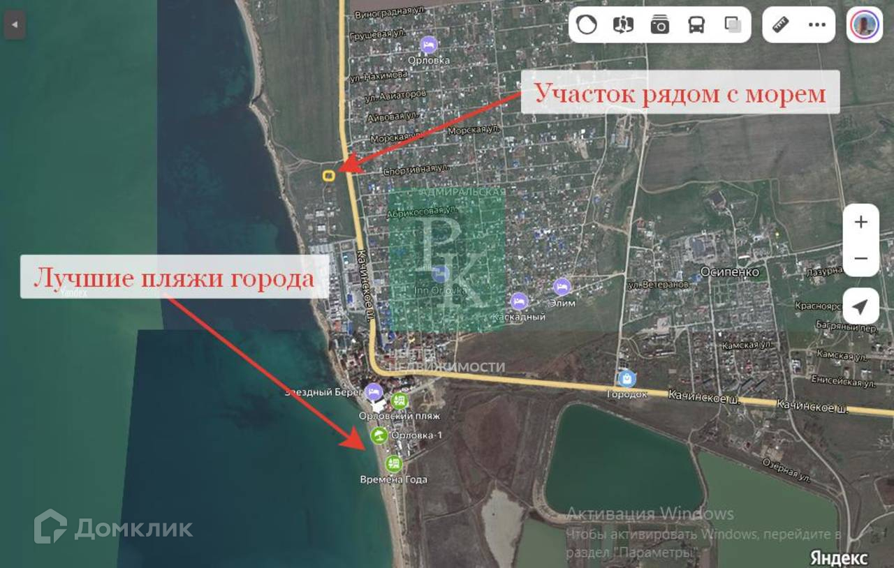 Участок находится в массиве жилой застройки с удобным подъездом, съезд с Качинского шоссе, в 100 м от моря.