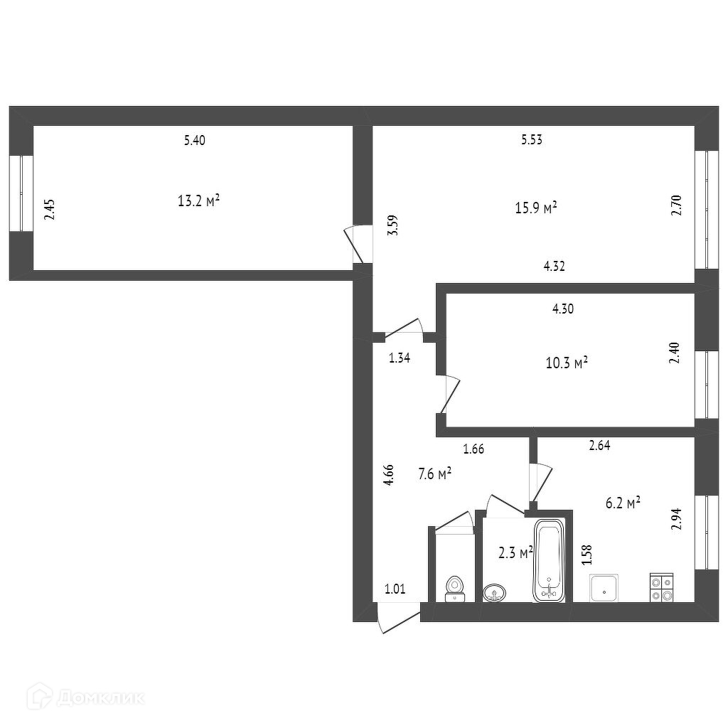 Общая площадь 56.3 м2