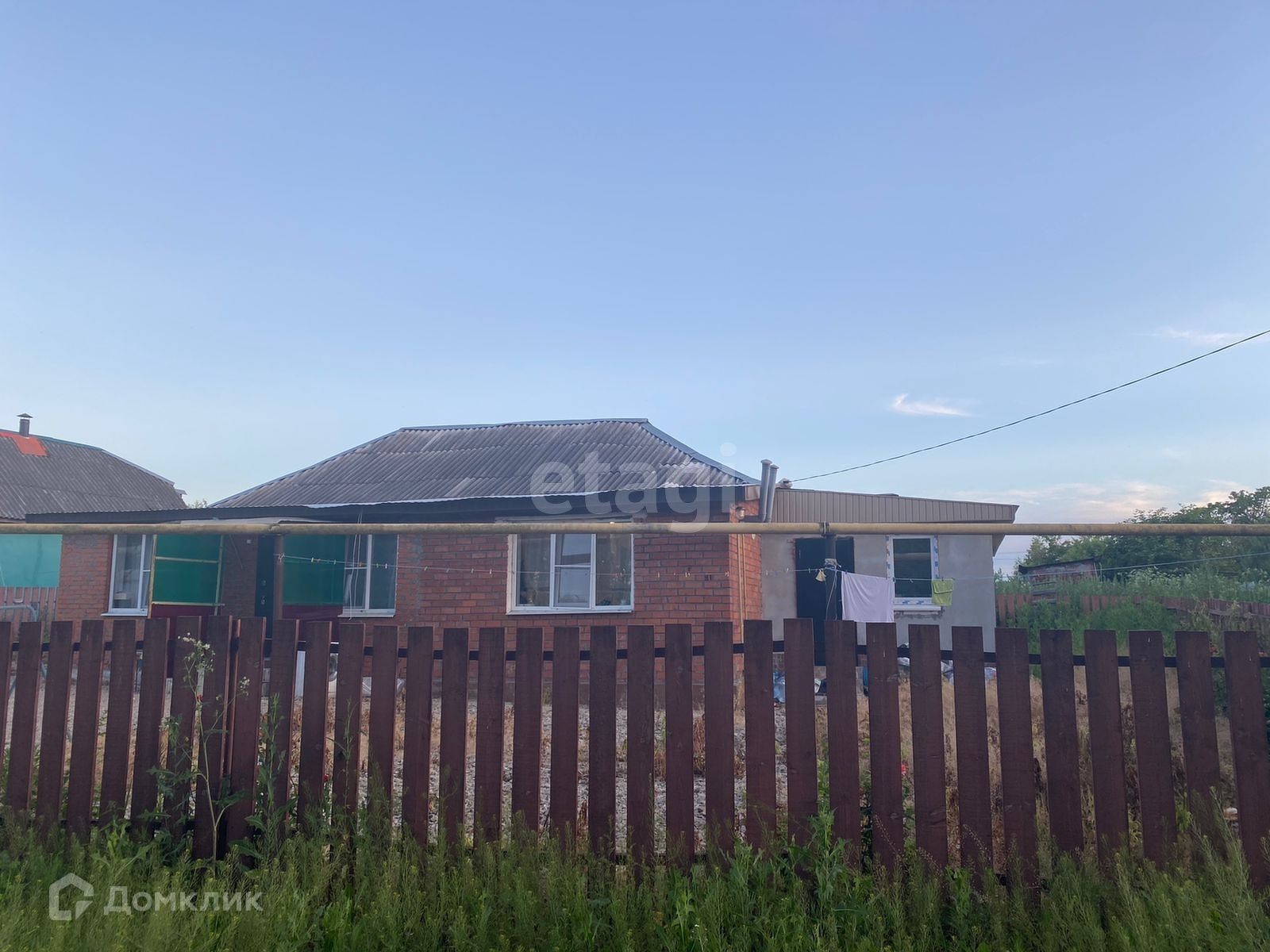 На территории дома находится металлический гараж, территория вокруг дома ограждена деревянным забором.