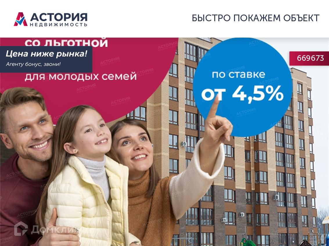 Возможна ипотека по ставке 4,5% по программе "молодая семья".