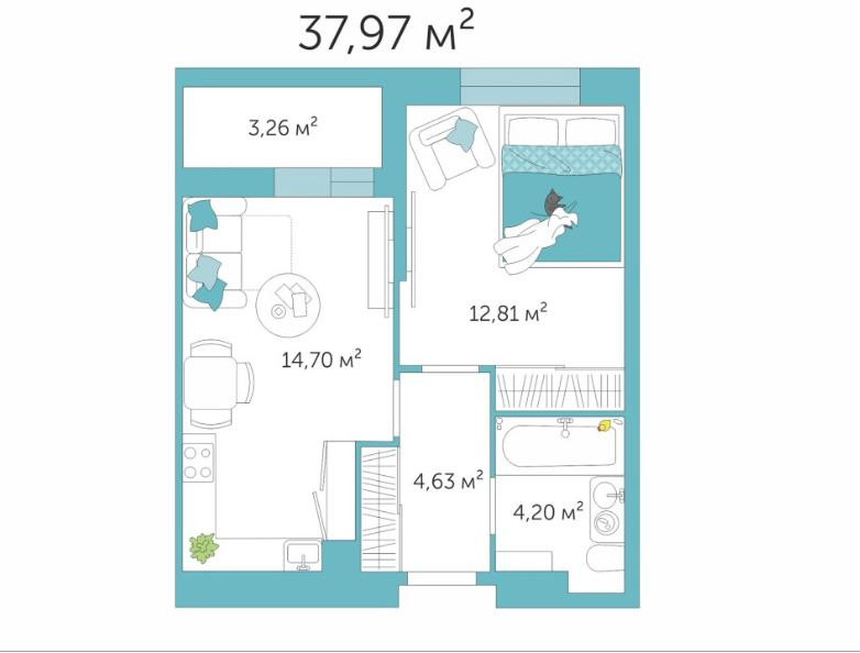 Общая площадь 37.97 м2