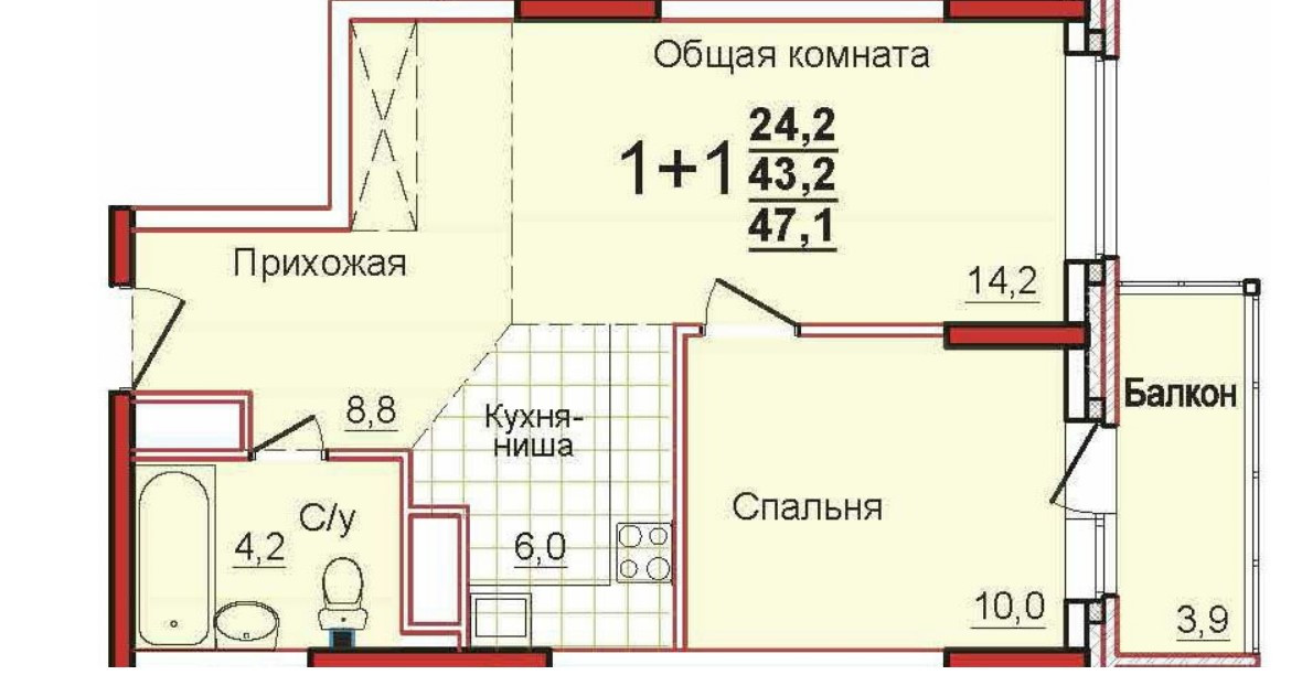 Общая площадь 47 м2