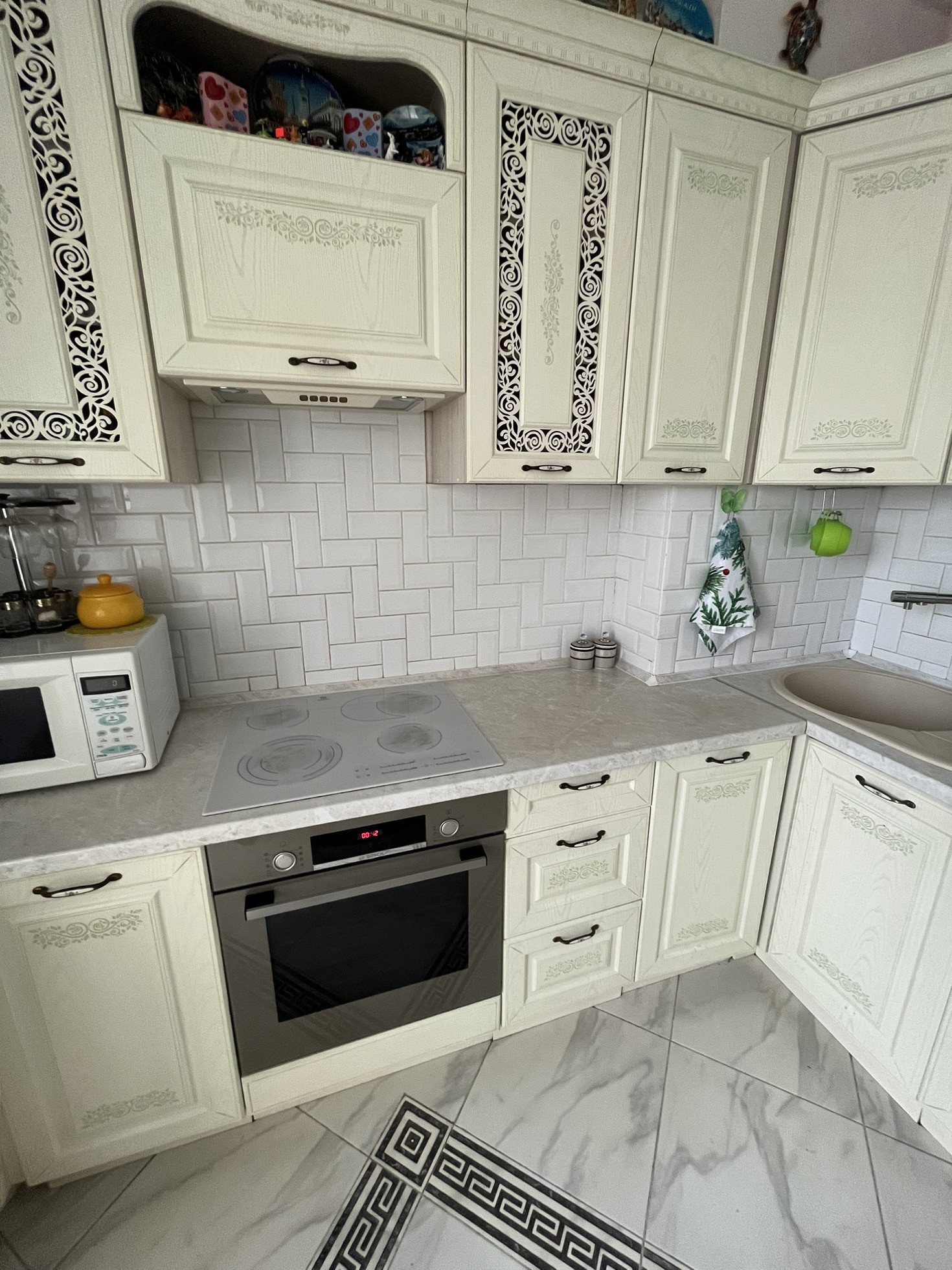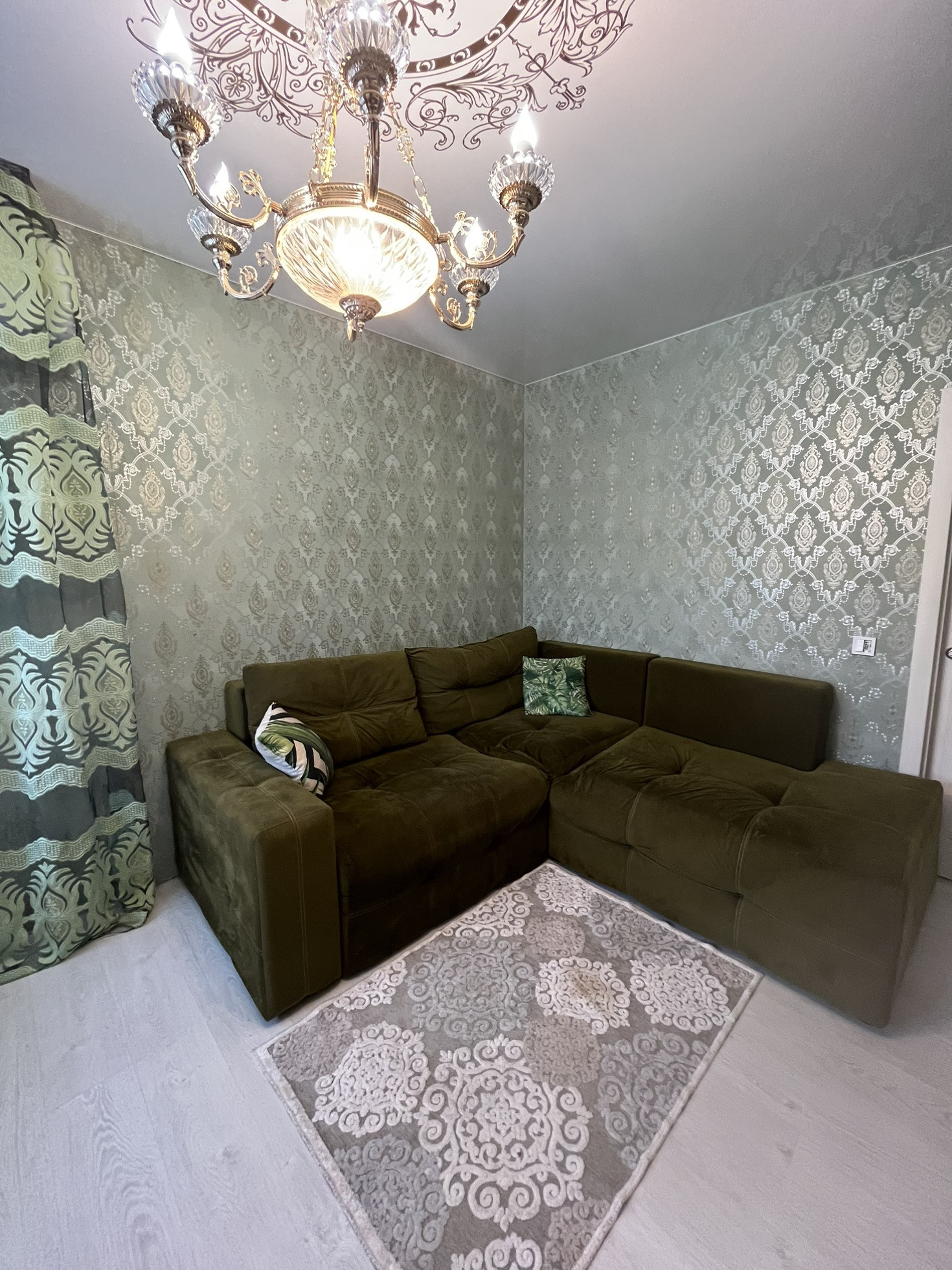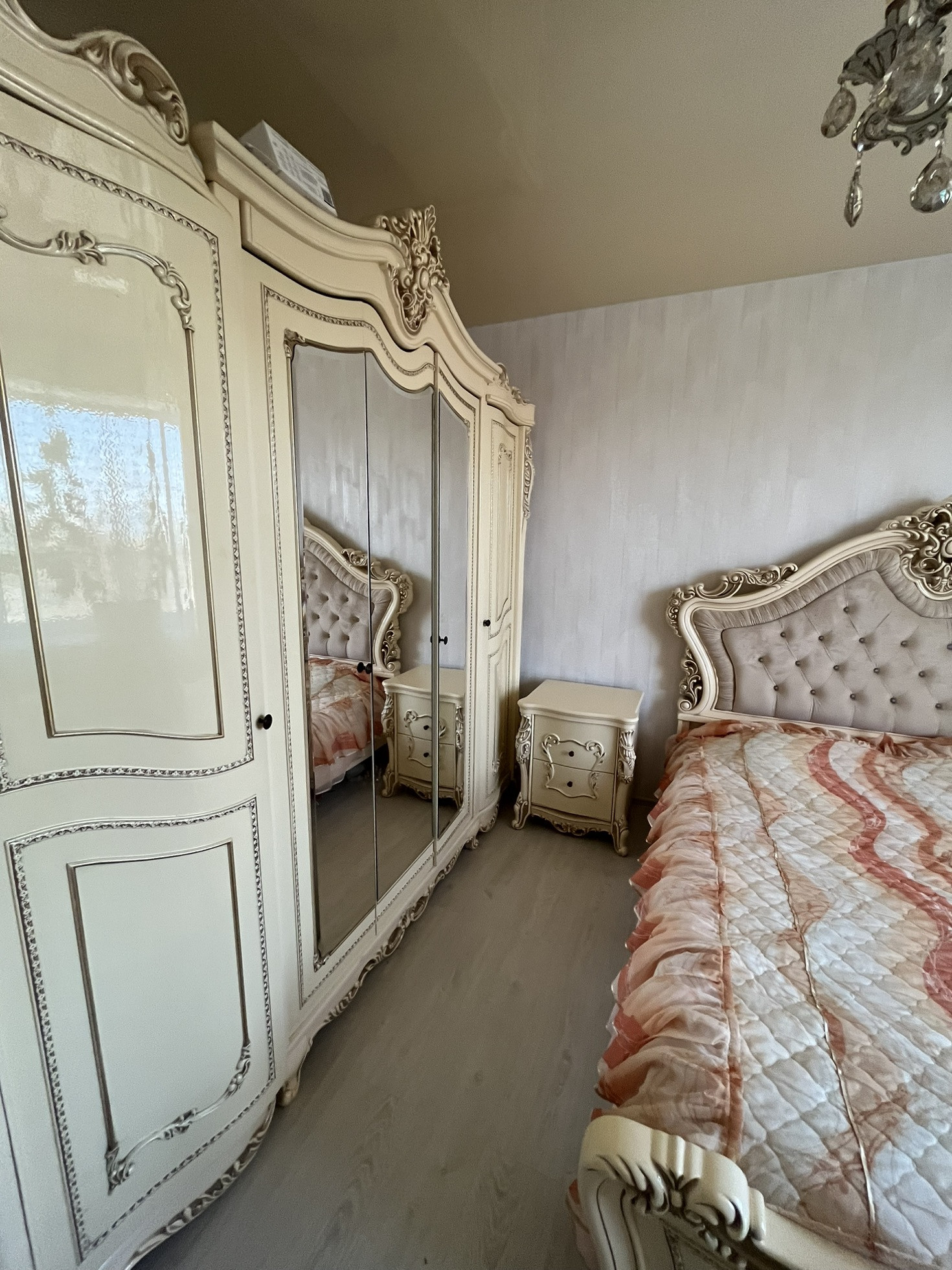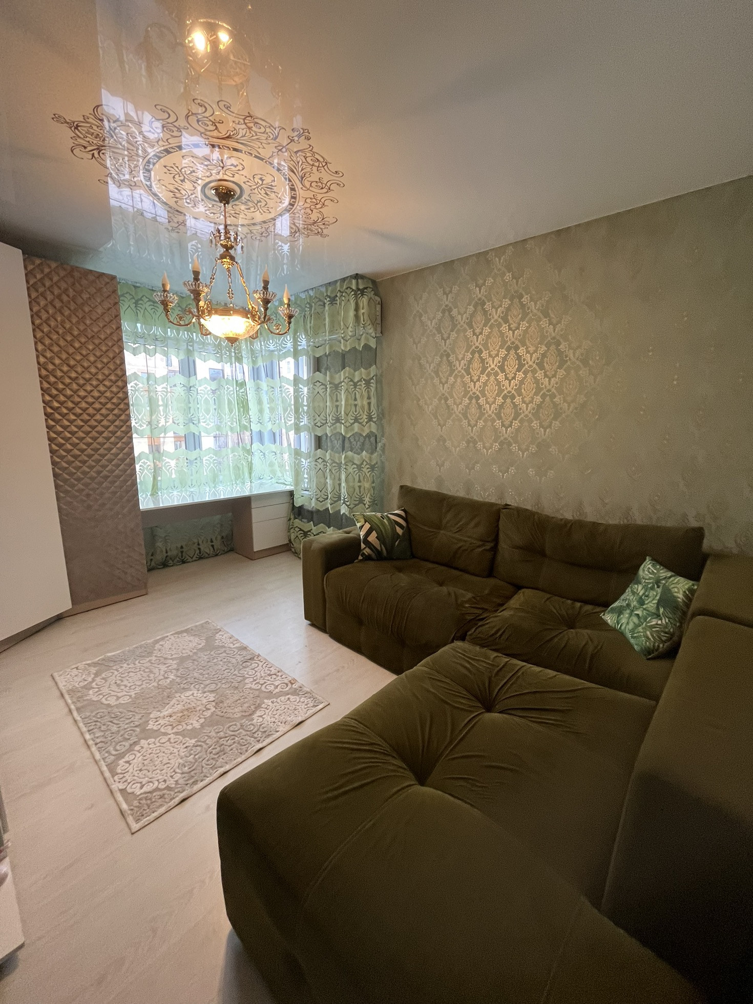 В квартире остаётся кухня со всей встроенной техникой, огромный диван из экозамши, изготавливали под заказ. Остальная мебель по договорённости. Просторная кухня гостиная и две изолированные комнаты, зал и спальня. Большая ванная комната, с итальянской сантехникой.