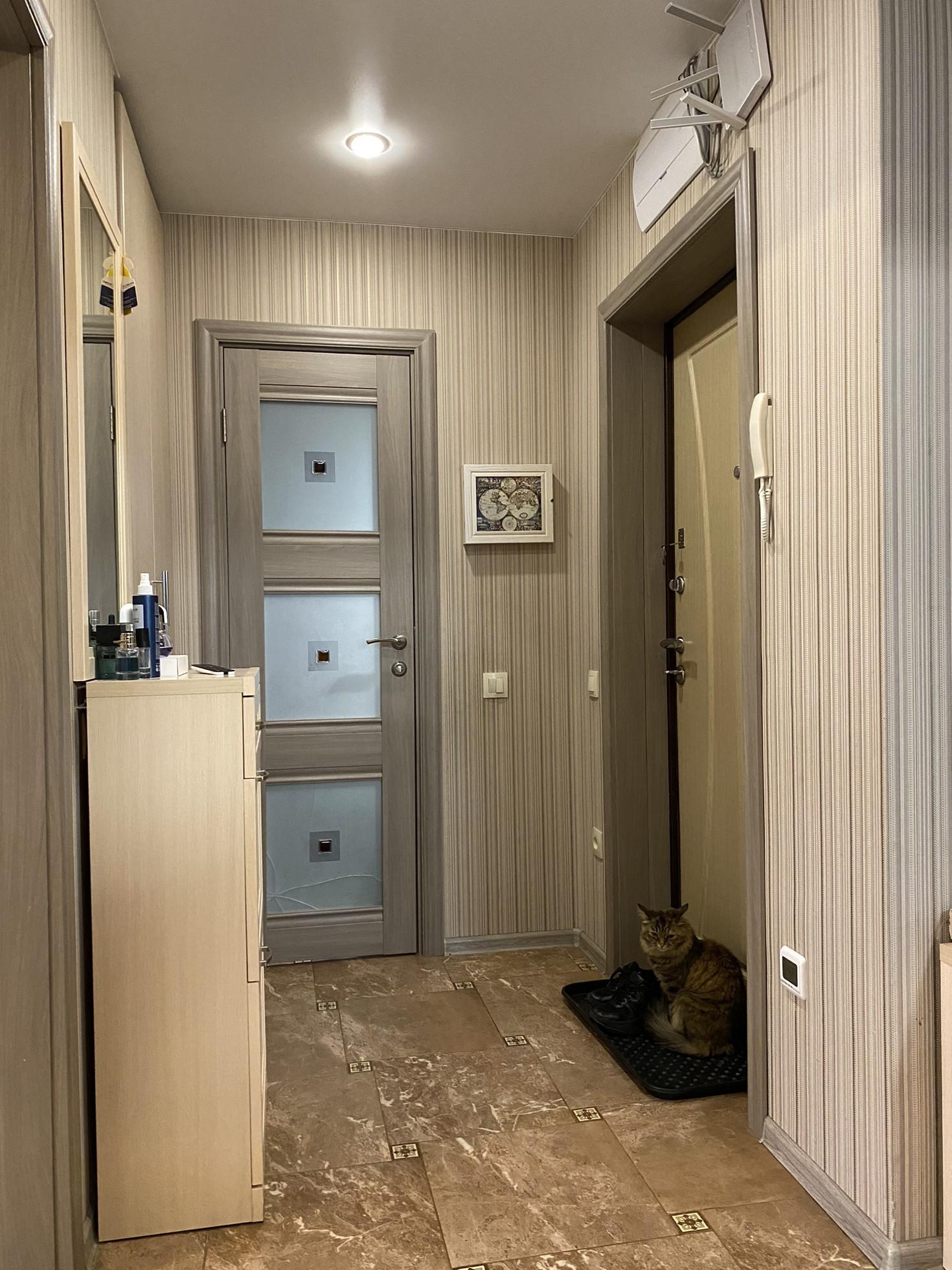 Ремонт отличный, делали для себя, установлен качественный кухонный гарнитур чественный кухонный гарнитур , встроенная посудомойка, теплые полы в зоне коридора и ванной.