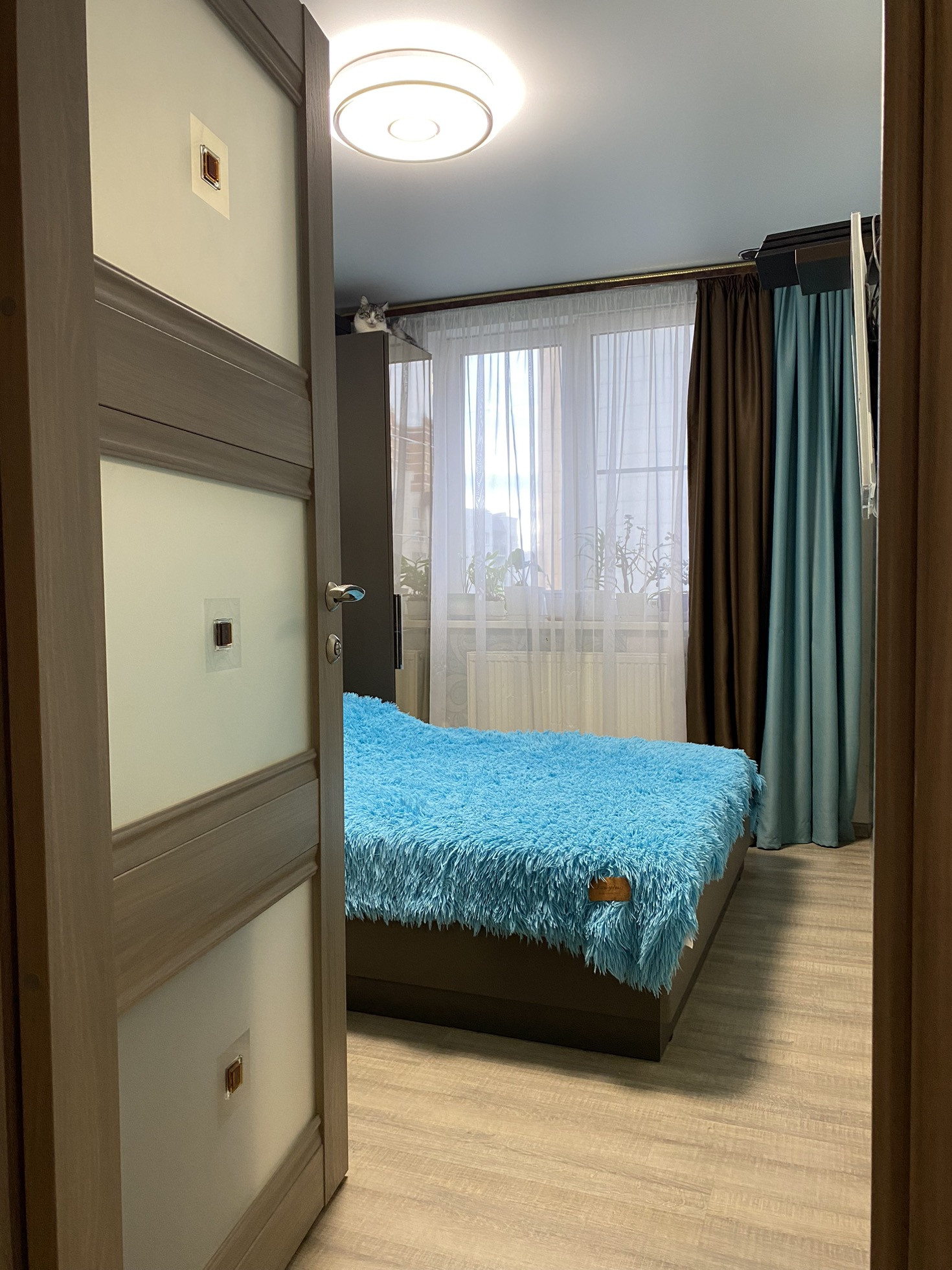 Продается уютная 3-х комнатная квартира на среднем этаже. Есть две отдельные спальни и совмещенная кухня-гостиная.