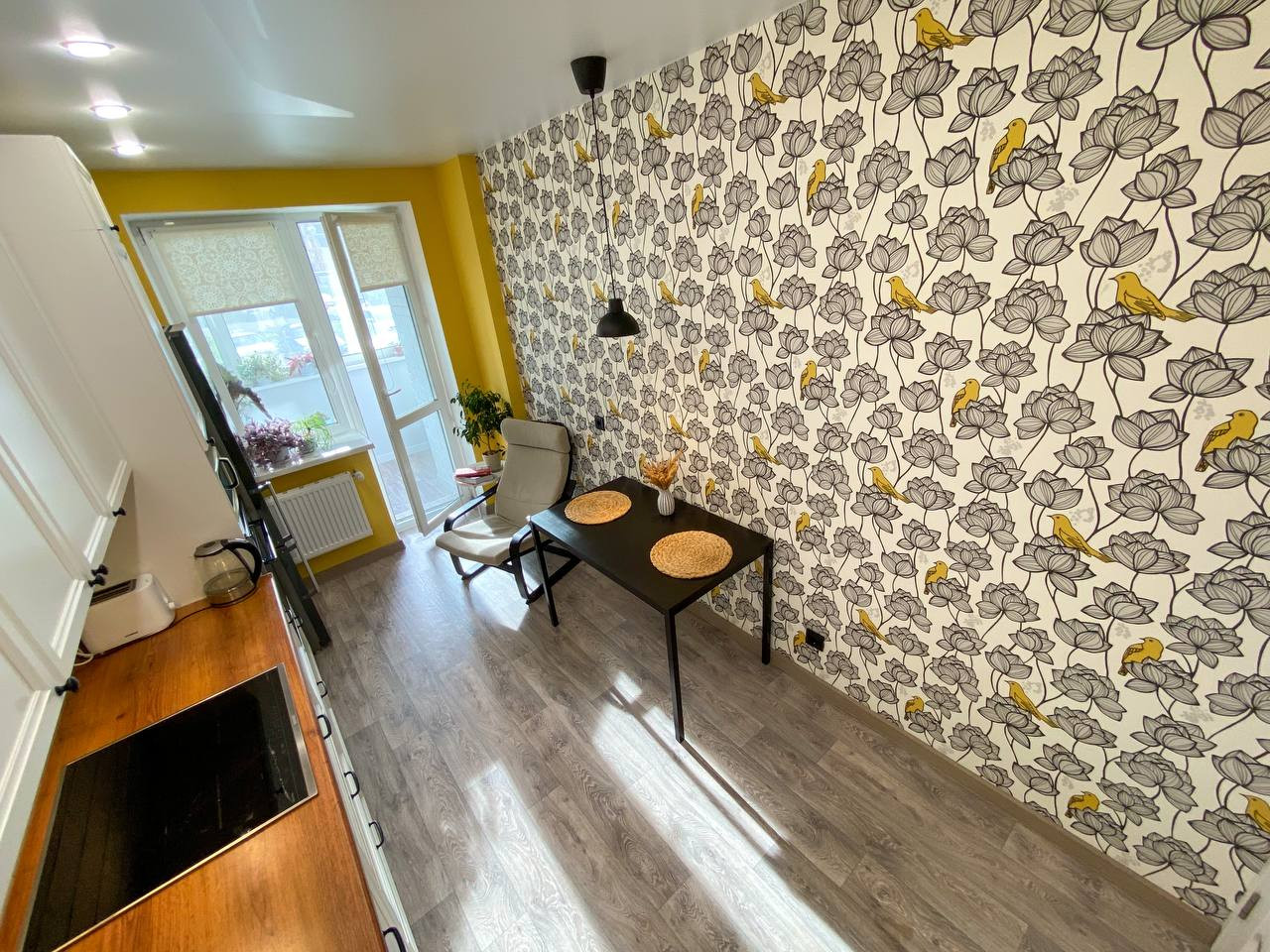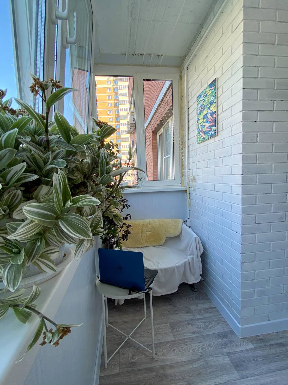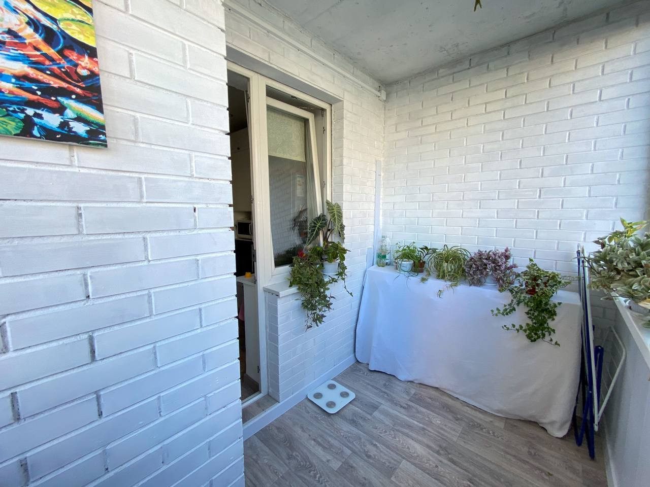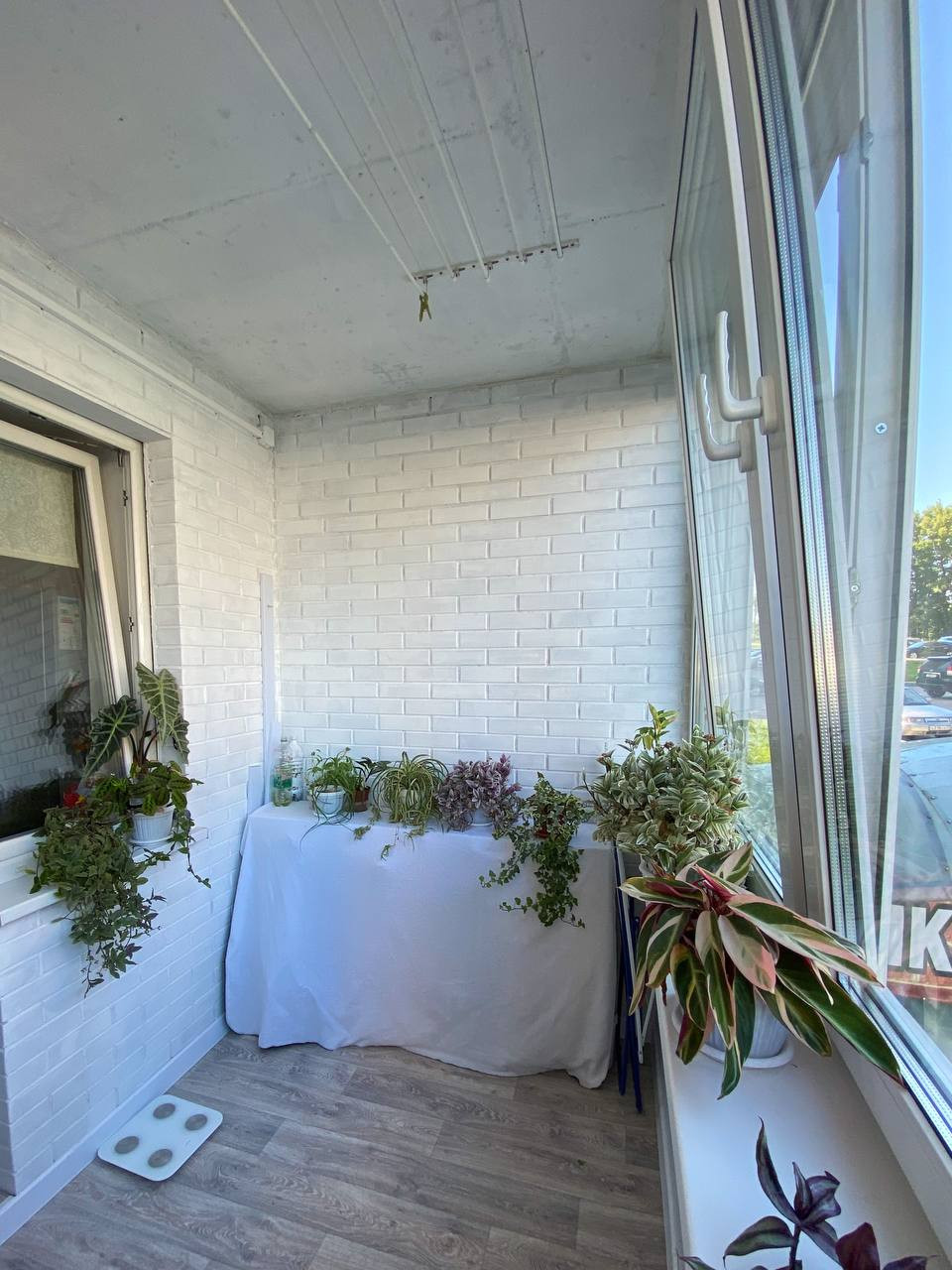 Утеплена лоджия, установлены двойные стеклопакеты REHAU. Широкая планировка позволяет поставить там диван, оборудовать кабинет или зону отдыха.