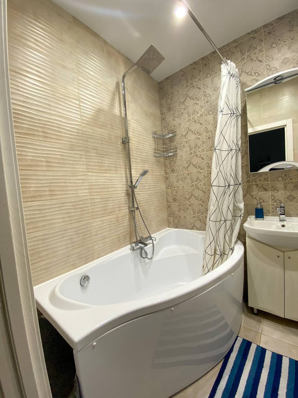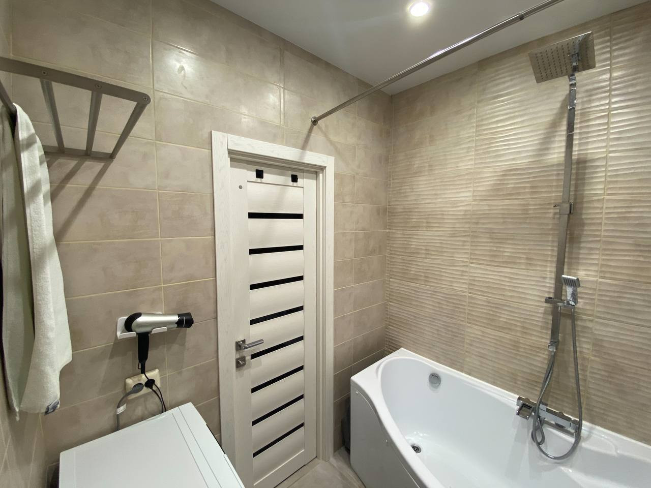В ванной плиточные швы промазаны эпоксидной затиркой, по структуре это камень, который никогда не почернеет от сырости. Все канализационные трубы оснащены качественными обратными клапанами. Исключена вероятность затопления квартиры в случае засора канализации.