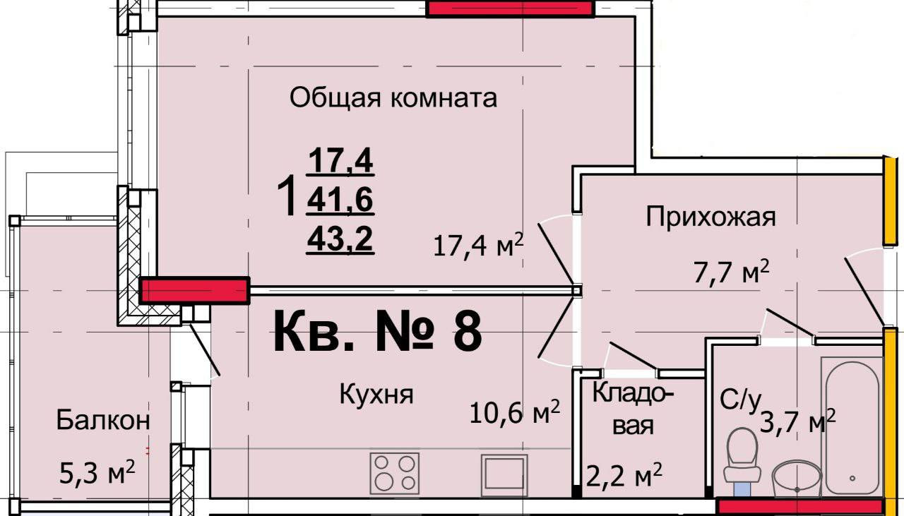 Жилая площадь 17.4 м2