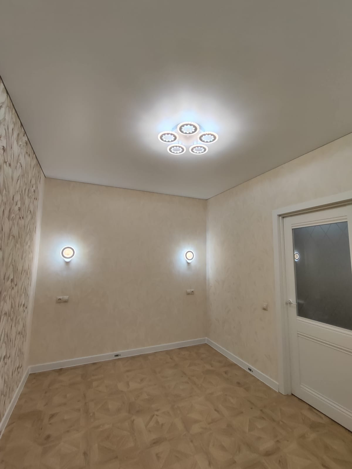 В квартире сделан красивый ремонт из качественных материалов. Медная электропроводка, установлено много розеток, в том числе розетки LAN и телевизионные. Натяжные потолки с оригинальной подсветкой.
