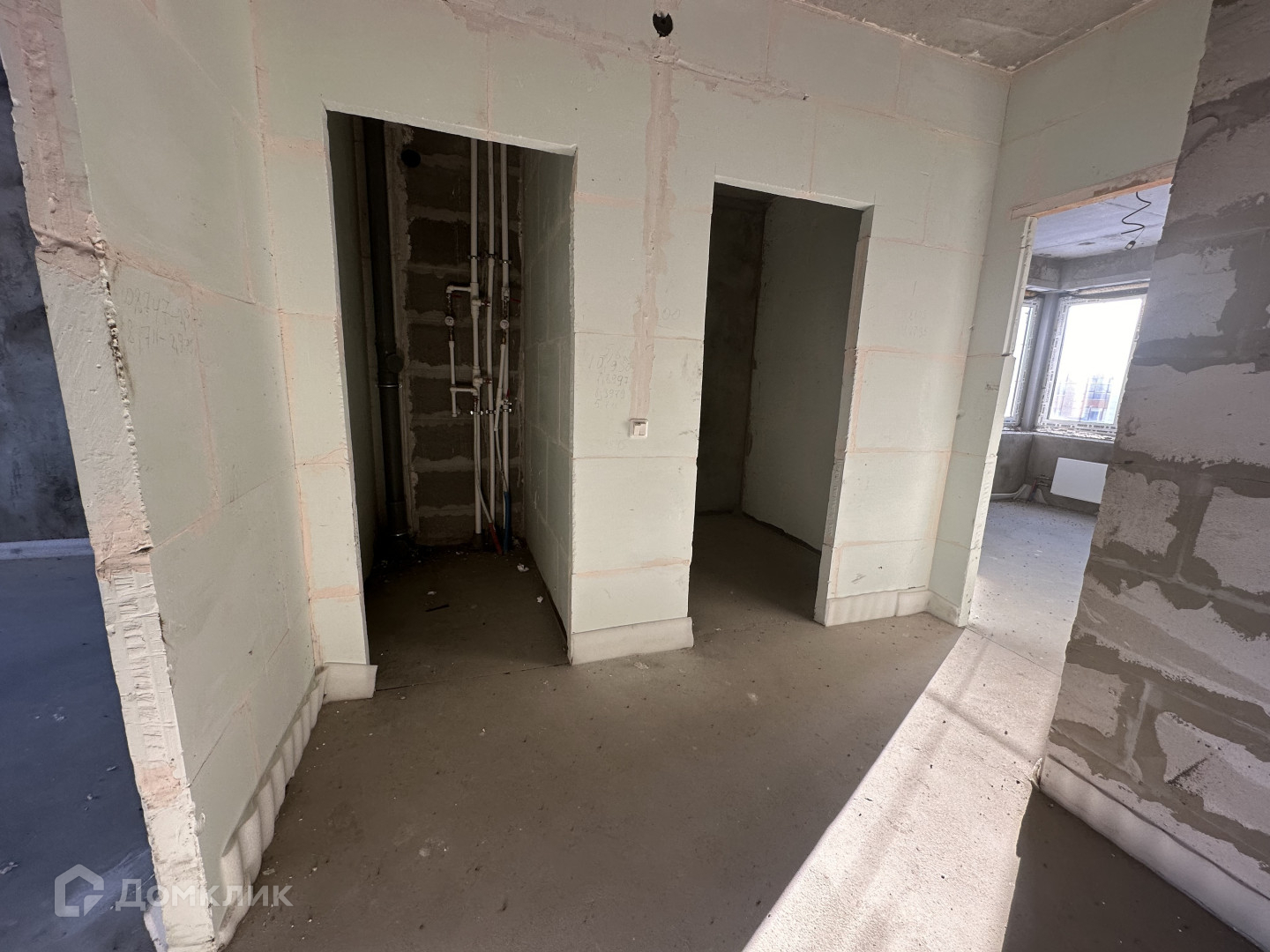 Выполнена стяжка пола, эл разводка, установлены приборы учета