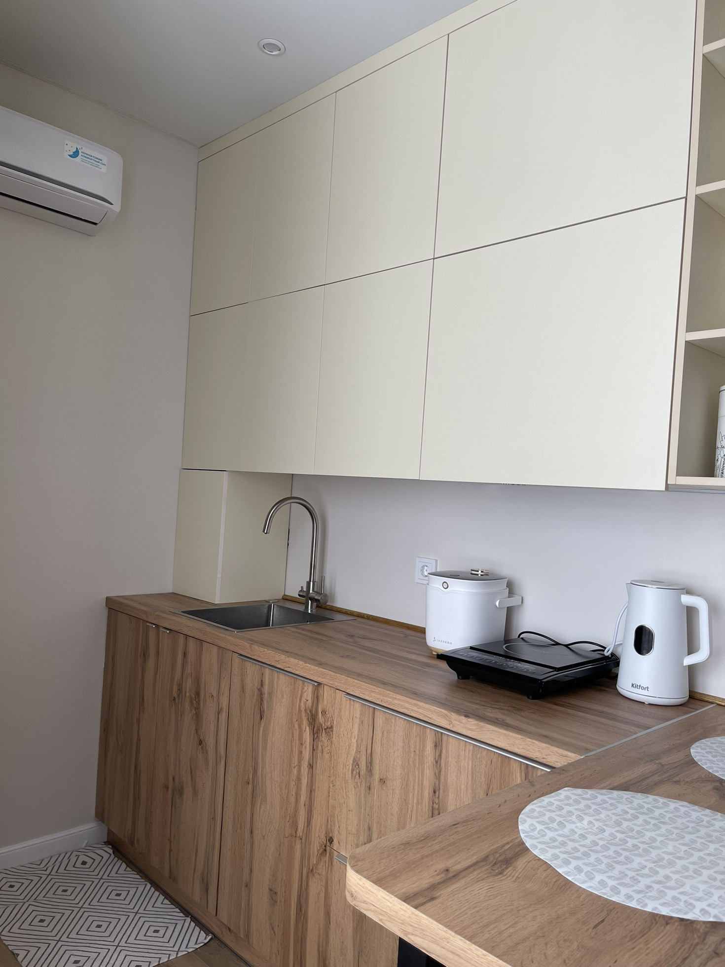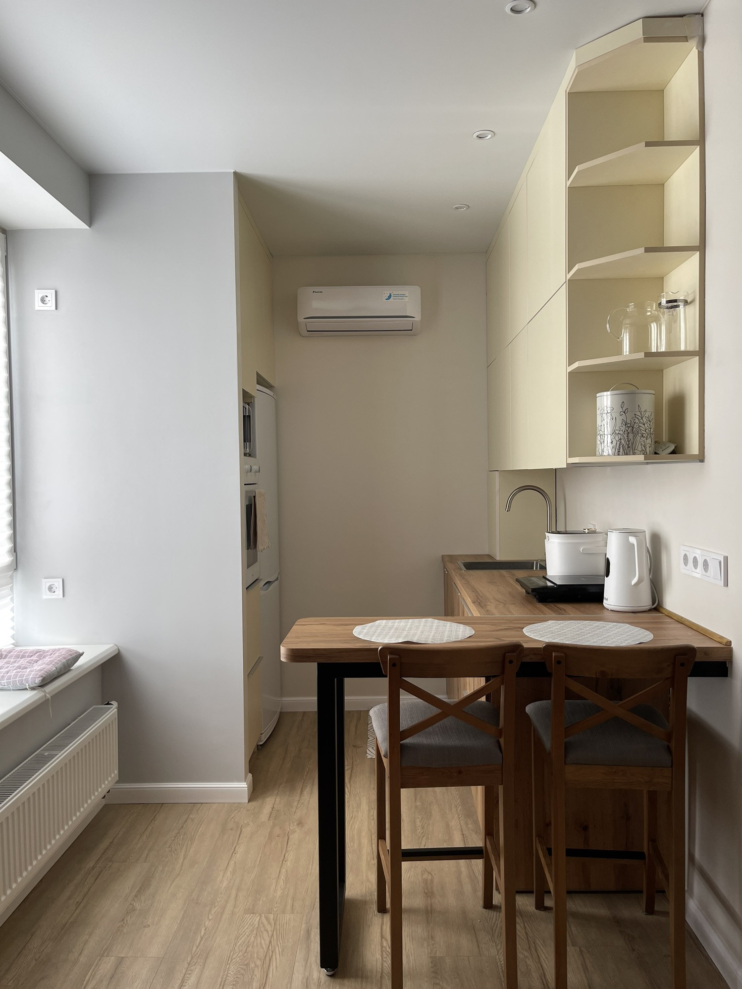 ❇️ Есть вся необходимая техника: посудомоечная машина, стиральная машина, холодильник, микроволновая печь, портативная варочная индукция, водонагреватель на санузел и на кухню, кондиционеры в комнате и на кухне. Вся техника остается новым хозяевам. Теплые полы в санузле, коридоре и балконе.