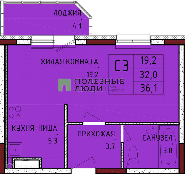 Общая площадь 36.1 м2