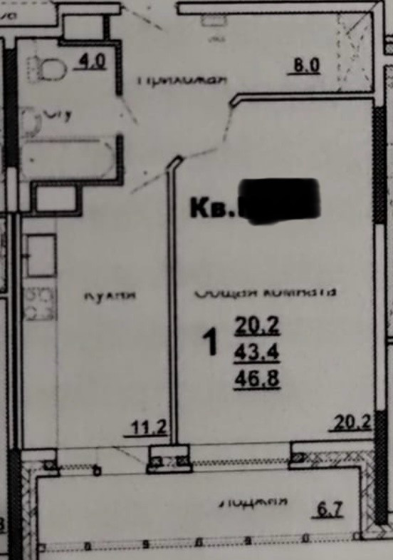 Общая площадь 44 м2