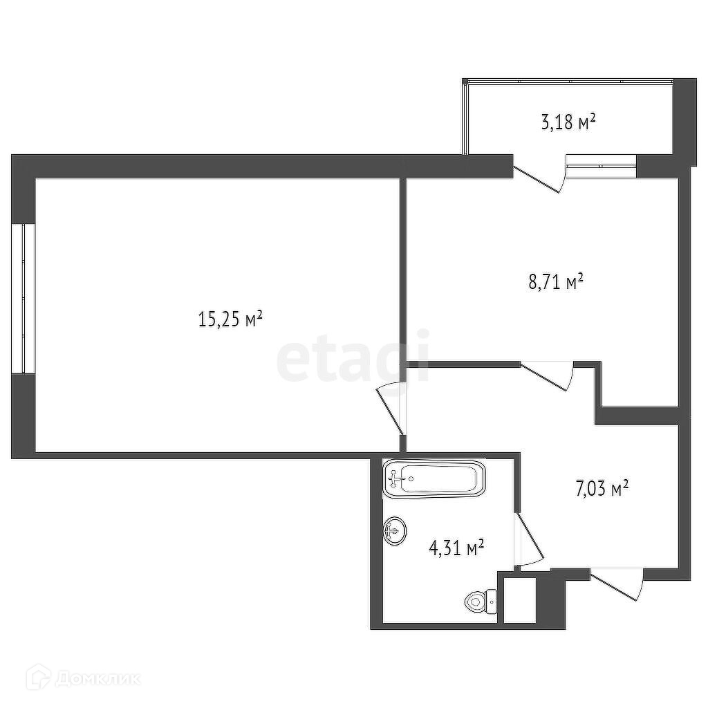 Балкон, лоджия 1 балкон