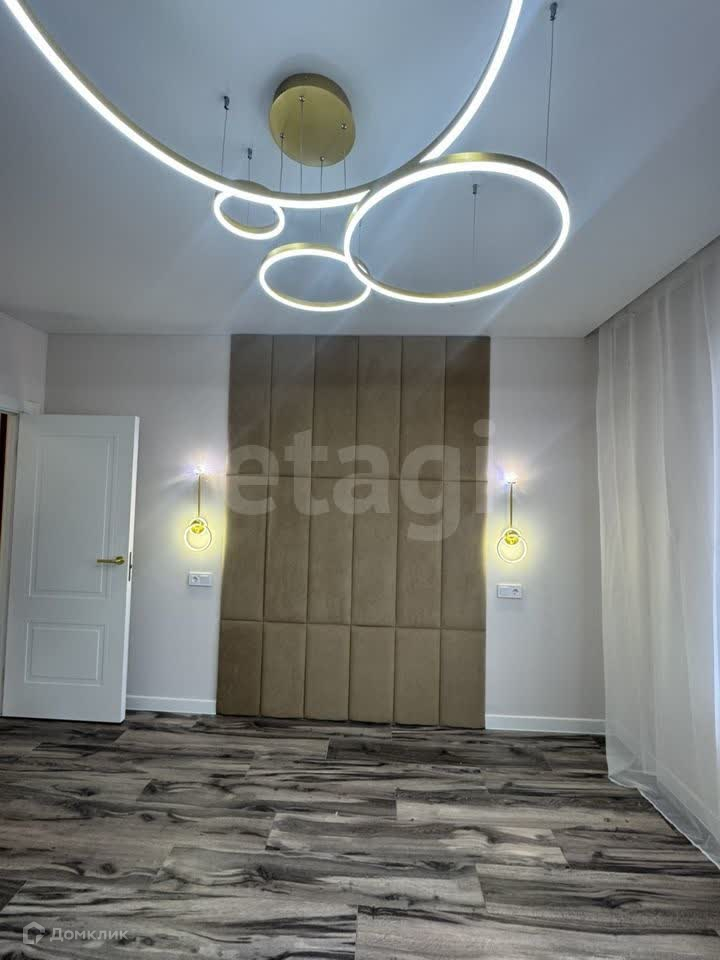 * Спальня оформлена с изысканным вкусом: мягкое изголовье добавляет нотку роскоши, а шикарные люстры и подвесные светильники создают неповторимое освещение.