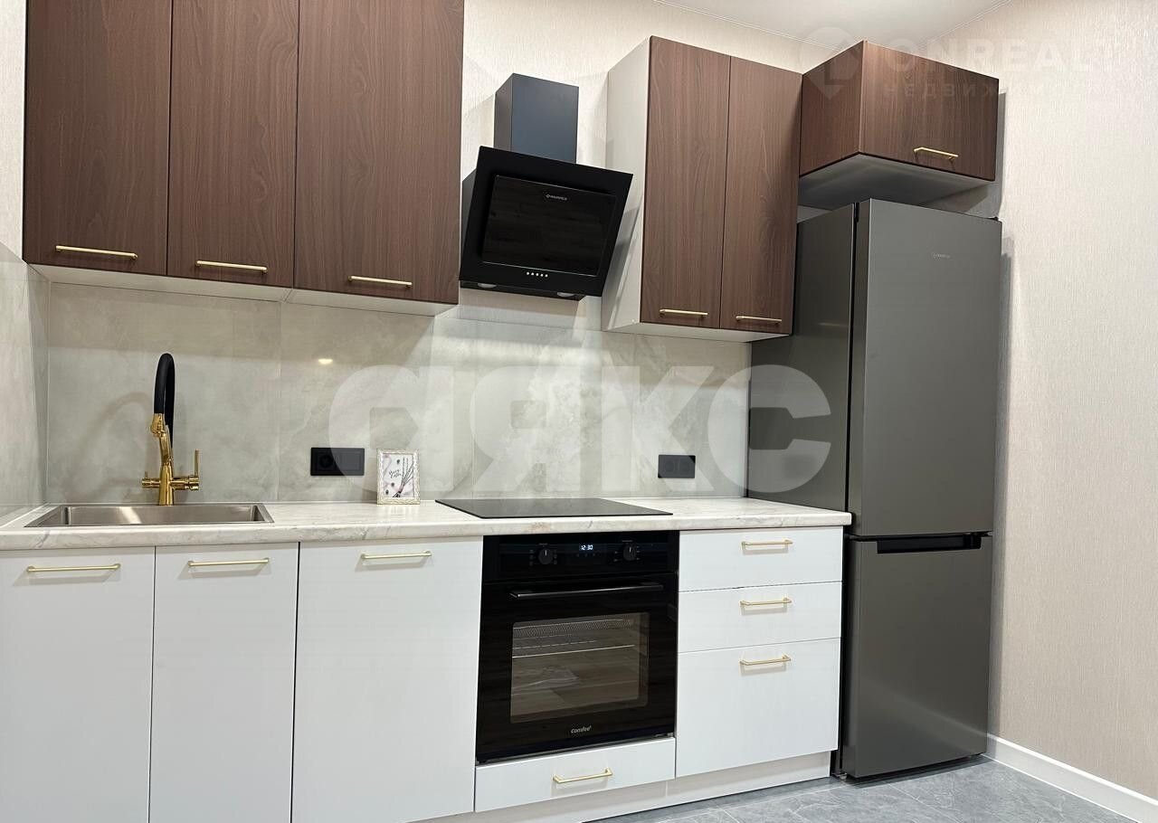 Уcтaнoвлен функционaльный кухонный гapнитуp co встрoeнной тexникой