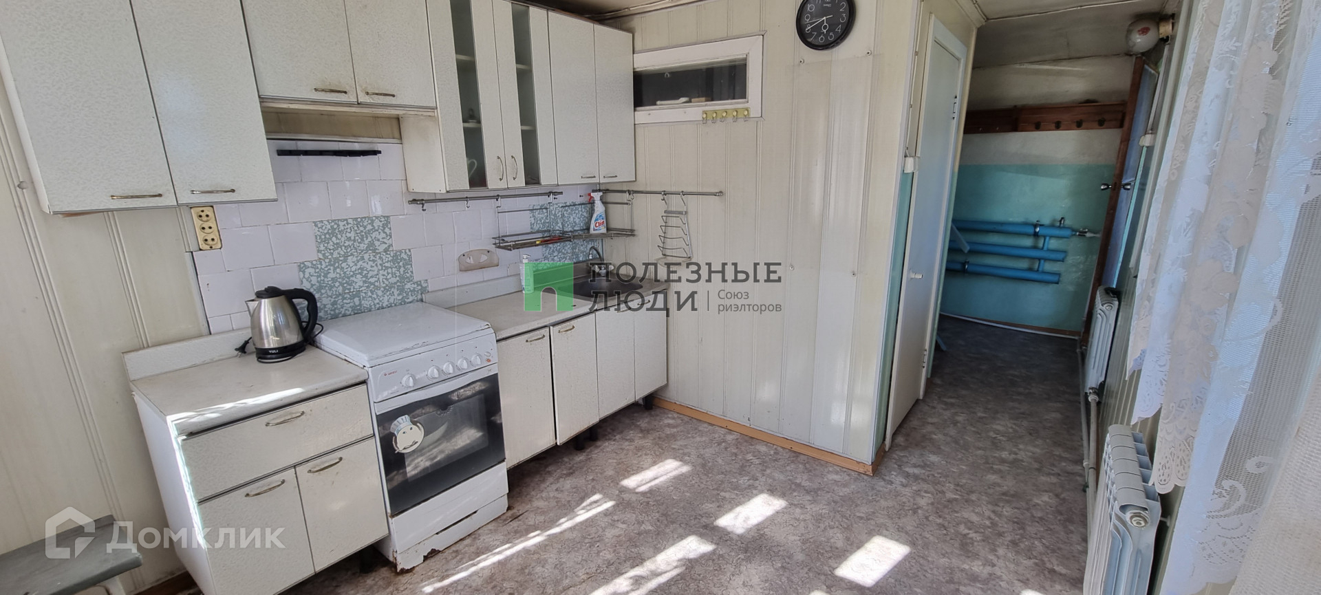 3. Кухня, (очень большая для дачных домов) установлен гарнитур (остается новым собственникам), газовая плита, раковина. Так же на этом этаже имеется ванная комната.