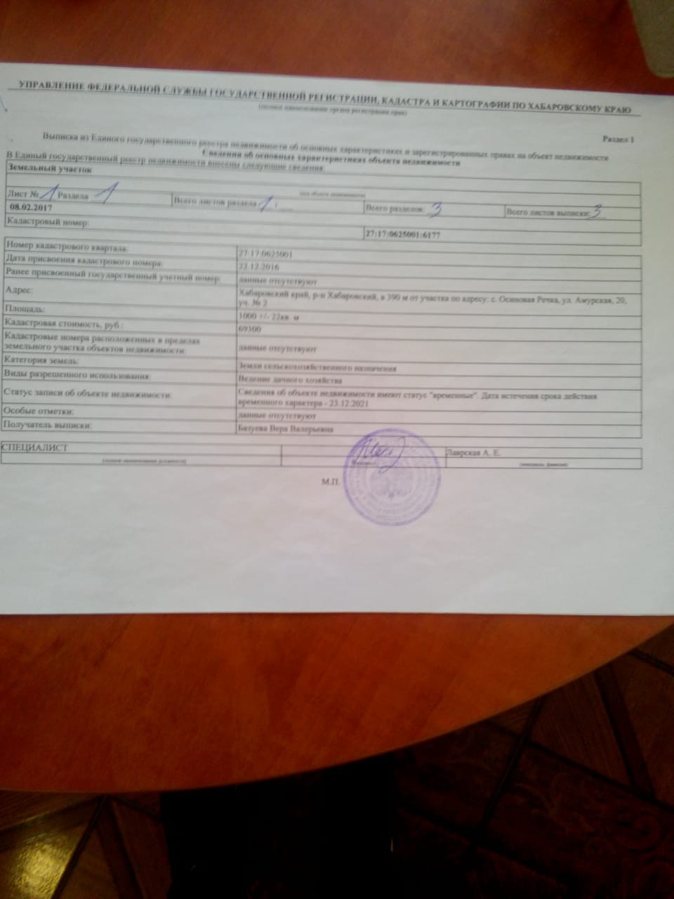 ПРОДАМ УЧАСТОК СЕЛЬХОЗНАЗНАЧЕНИЕ, электричесво подключено,возможность подключения,создано СНТ,установлен шлагбаум,имеется возможность перевода в ИЖС,участок расположен рядом с дорогой ,возможен торг.Кадастровый номер 27:17:0625001:6177