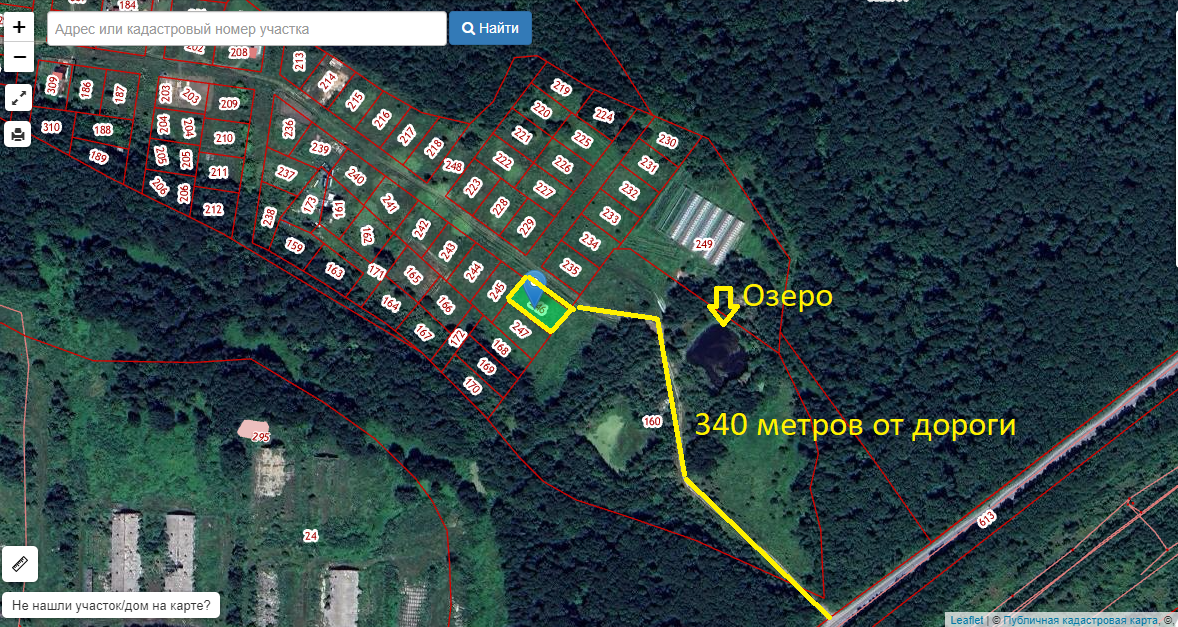 От главной дороги до участка 340 метров.