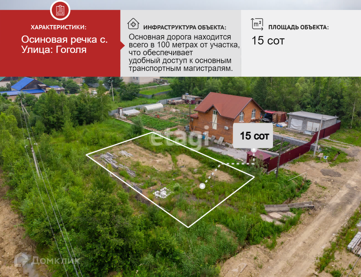 Участок под ИЖС, 15 сот. на продажу в селе Осиновая Речка, Центральная улица