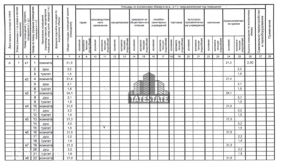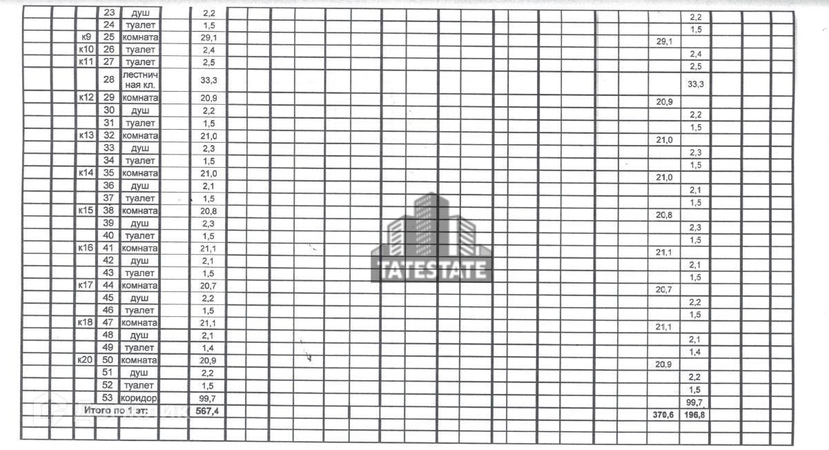 На этаже расположено 20 комнат. Светлые, просторные комнаты, правильной прямоугольной формы, в хорошем состоянии, пригодном для использования, с косметическим ремонтом. Каждая комната оснащена с/у, душем.