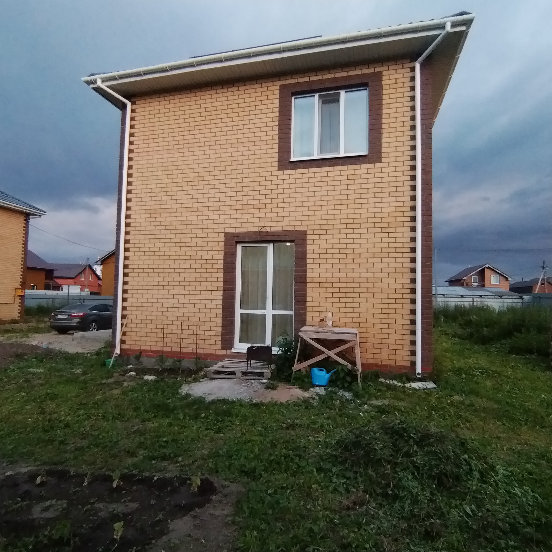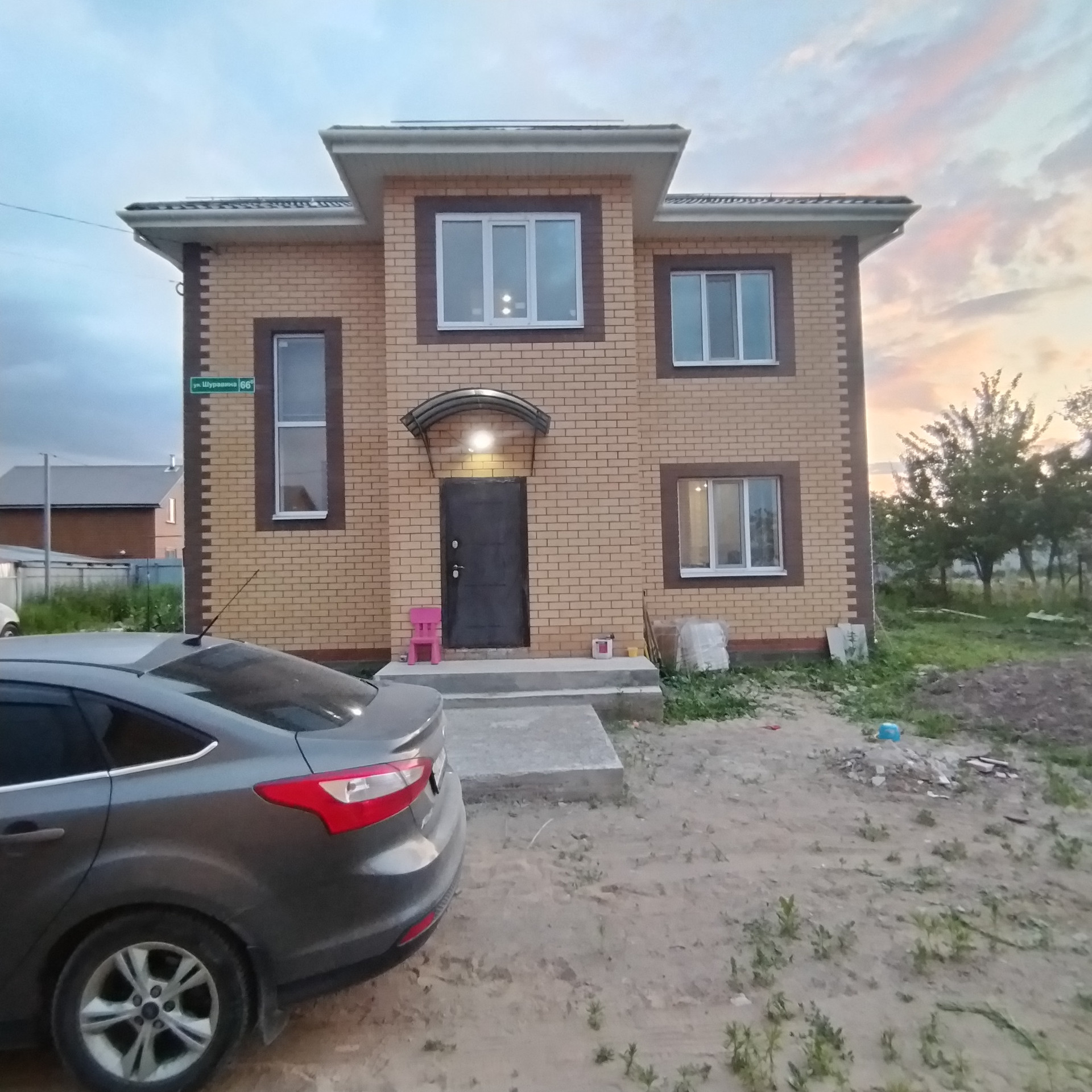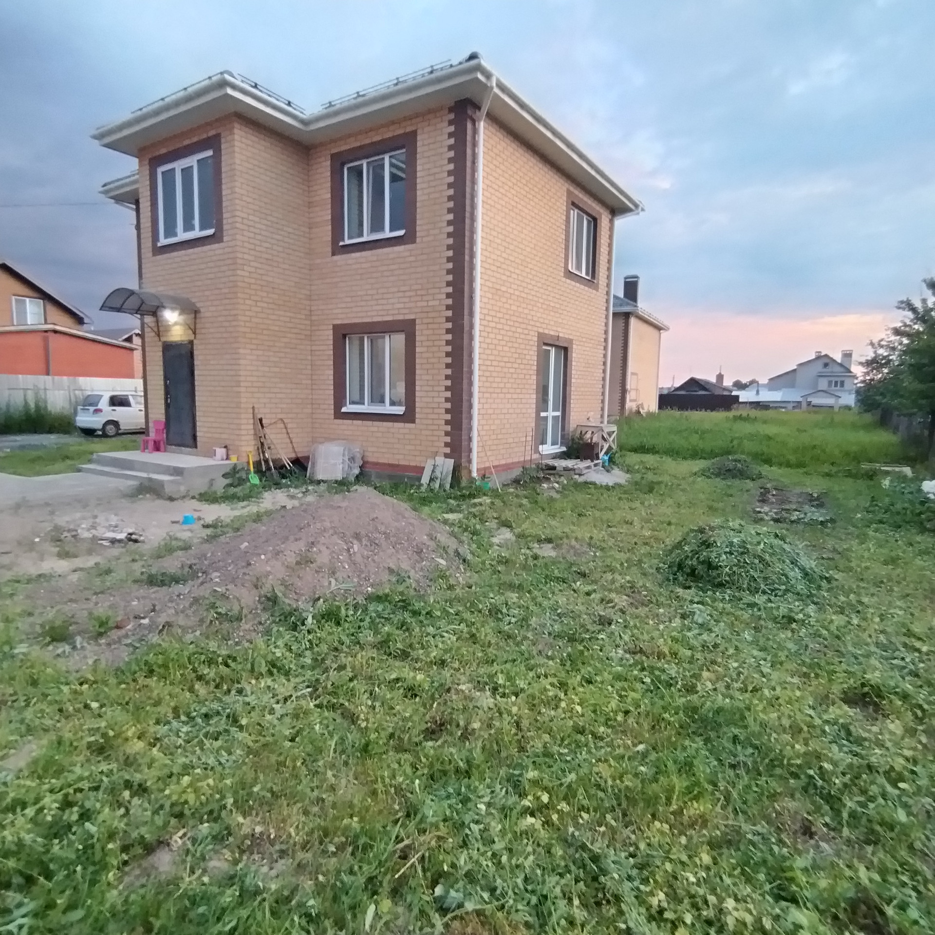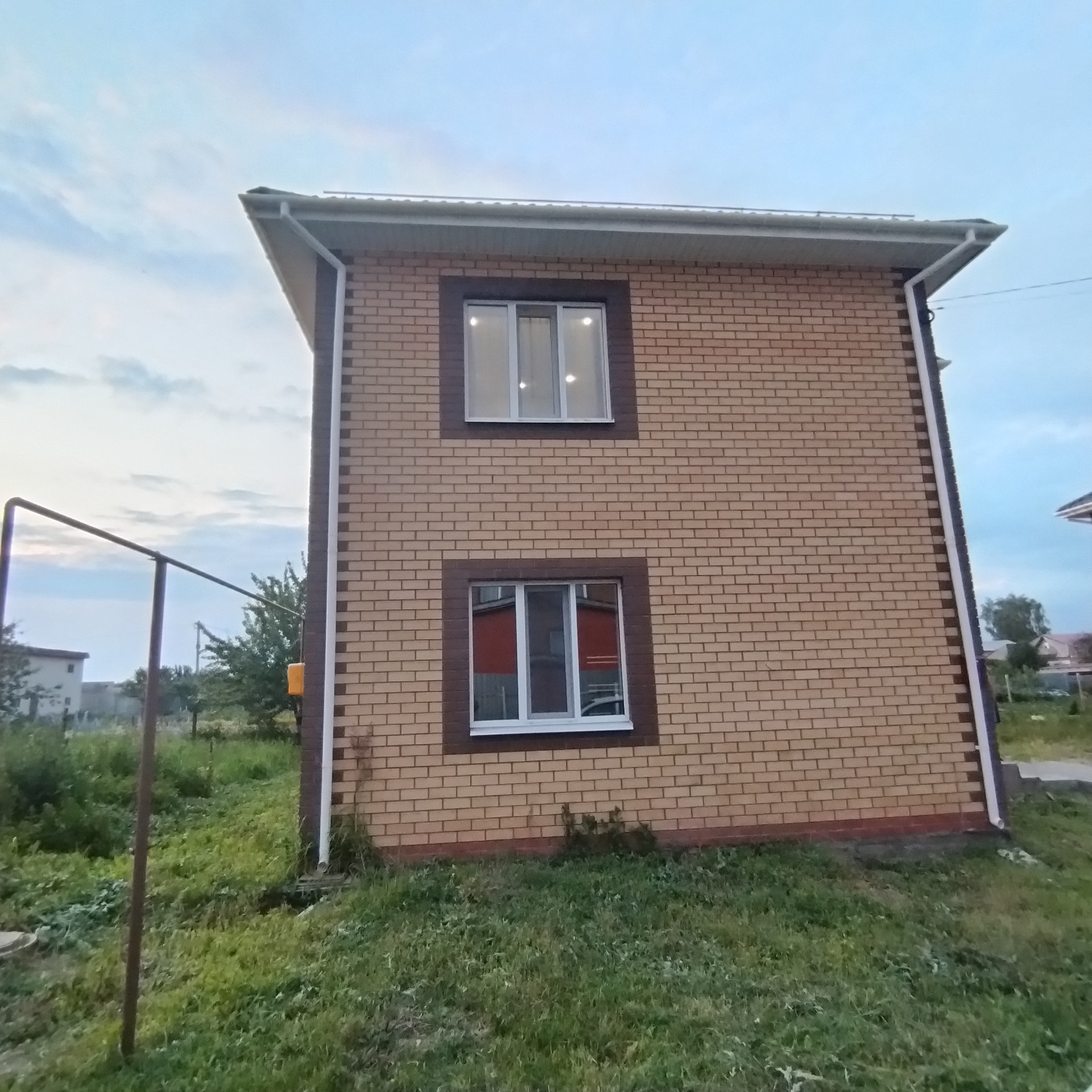Возведен дом на участке в 6 соток . Площадь дома в 122 кв.м. Запланировано асфальтирование дорог в поселке.