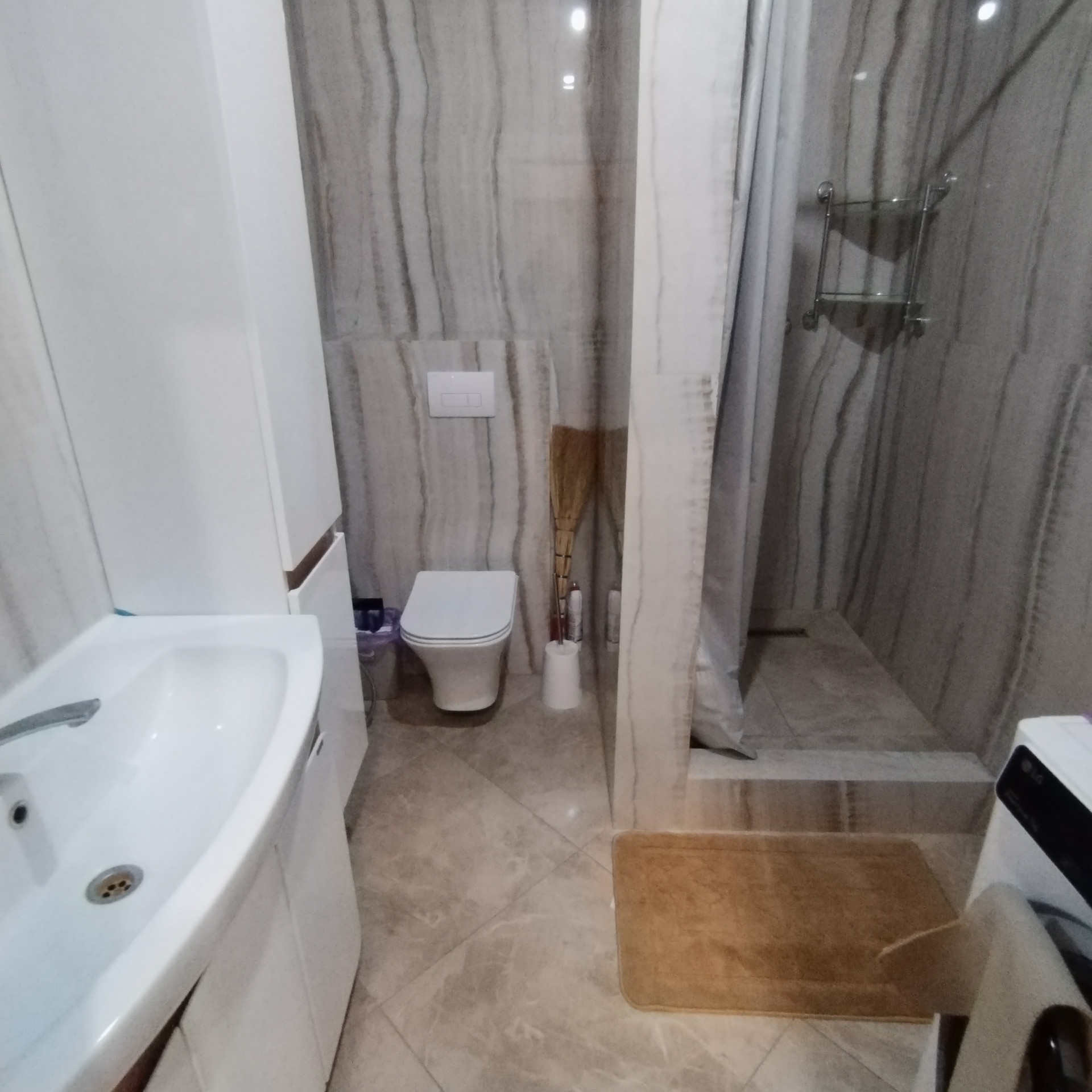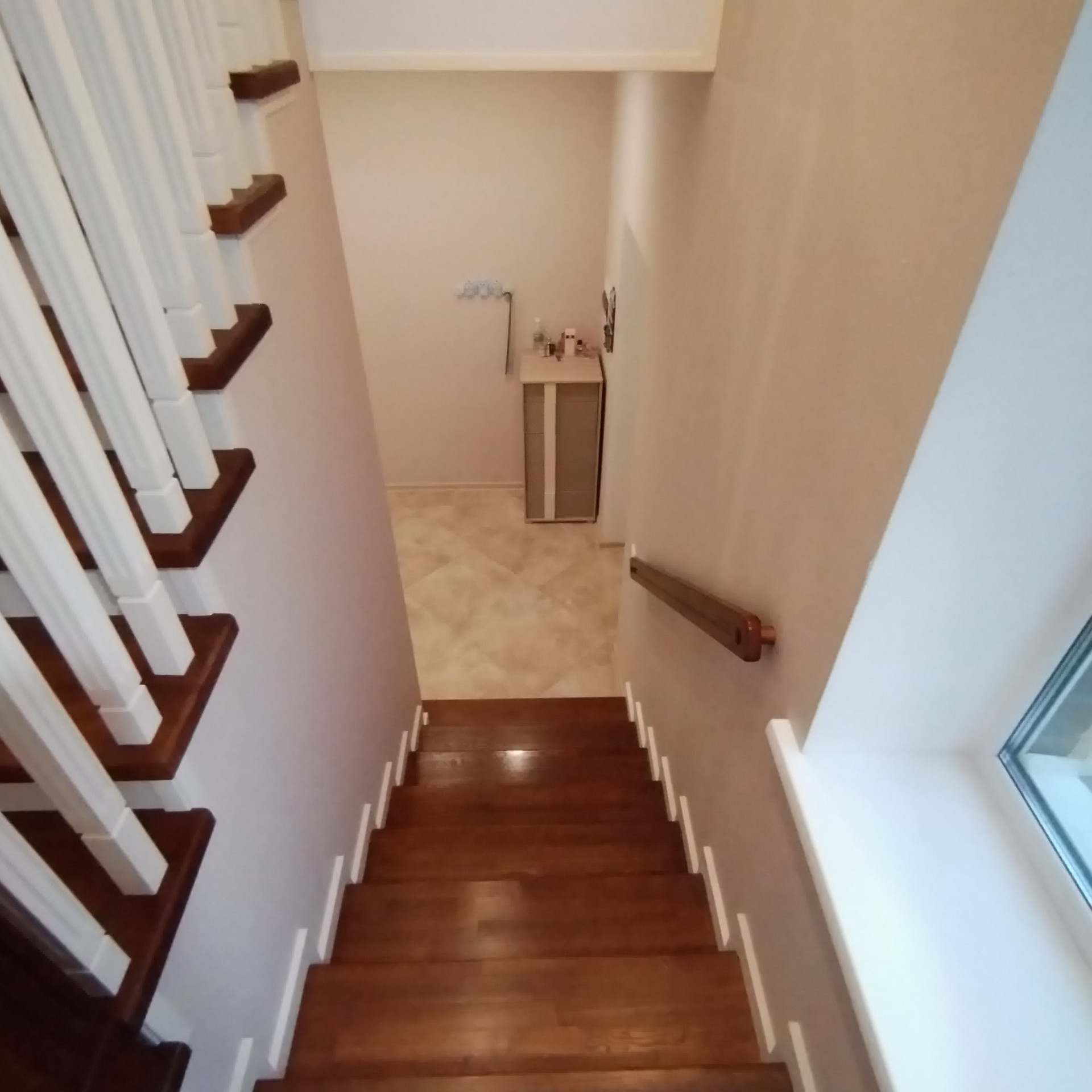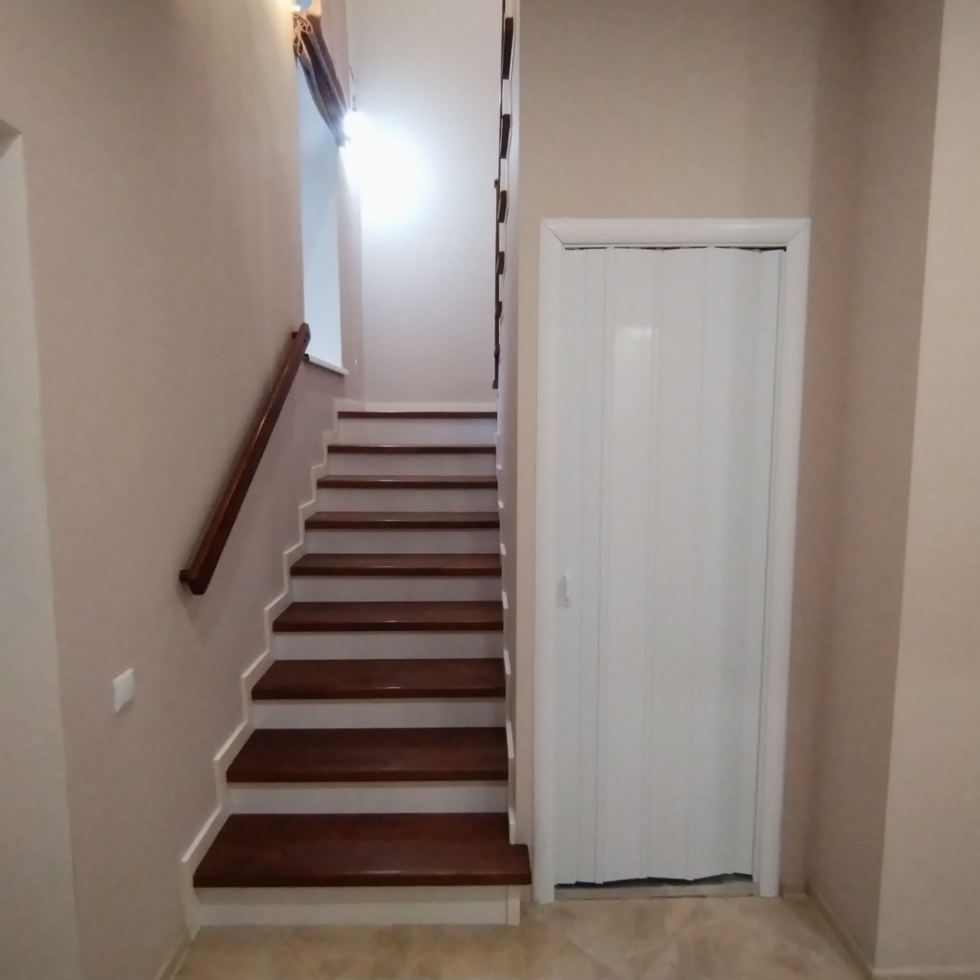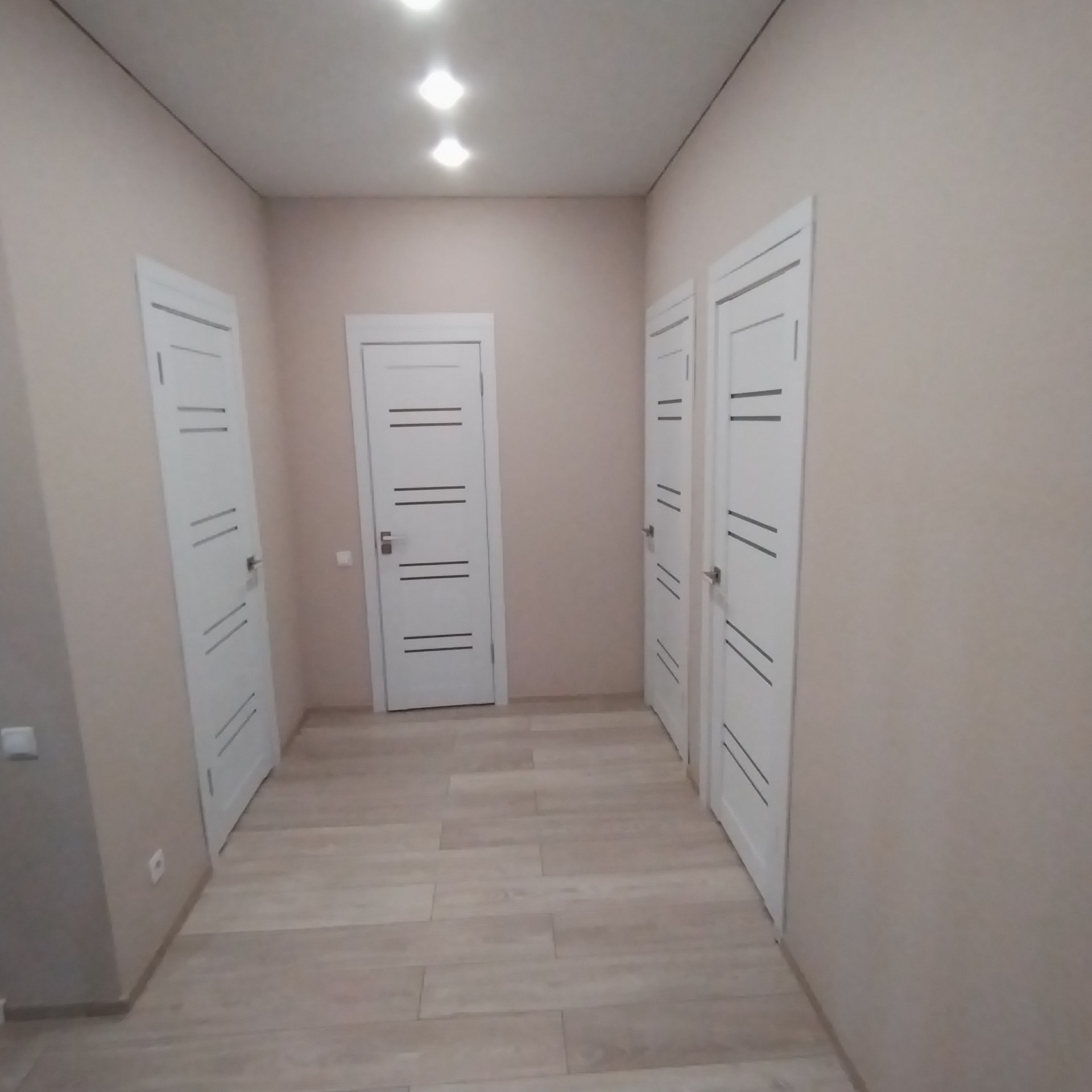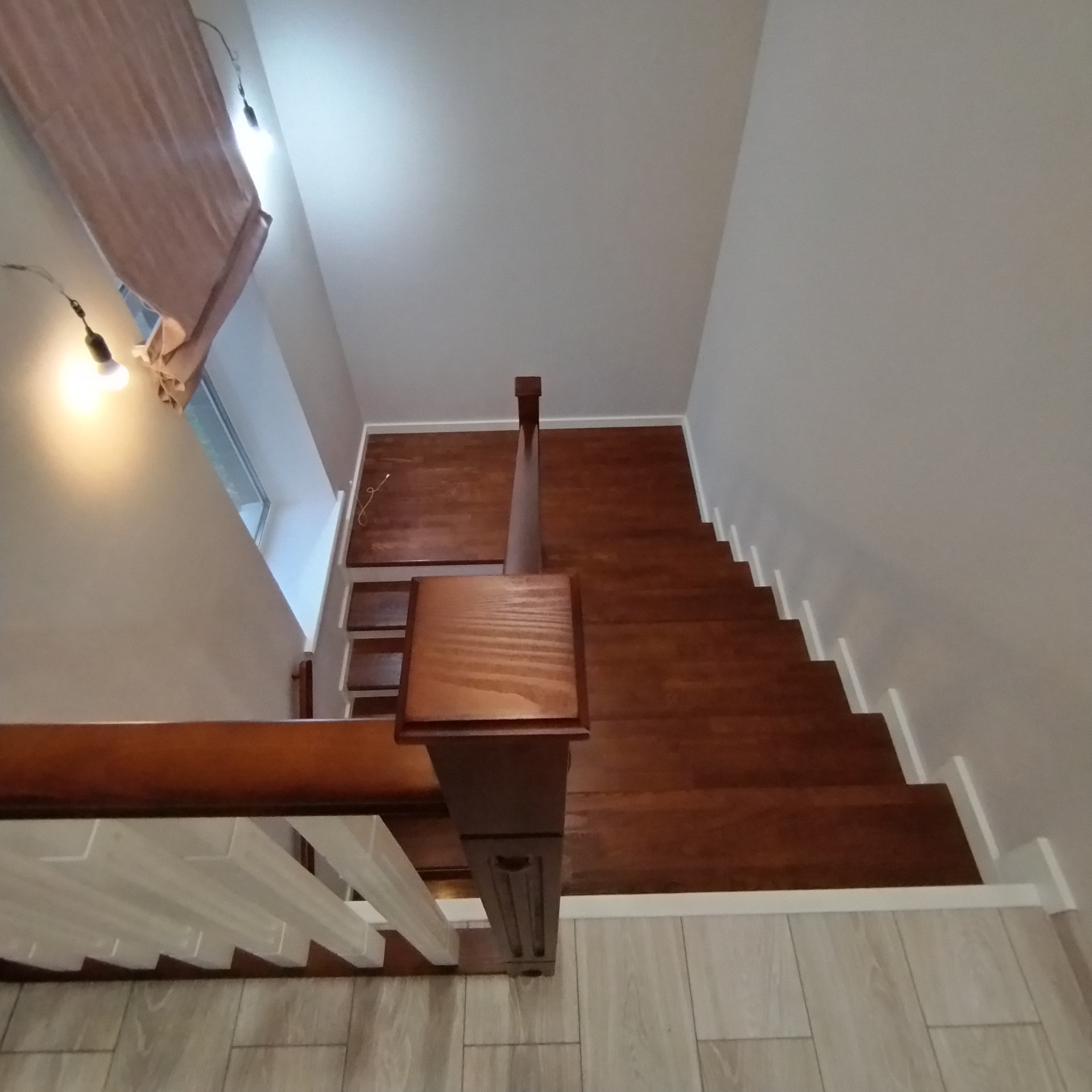 На стенах дорогие качественные обои, на полу ламинат хорошего качества, пол на 1этаже керамогранит, в сан.узлах - кафель.