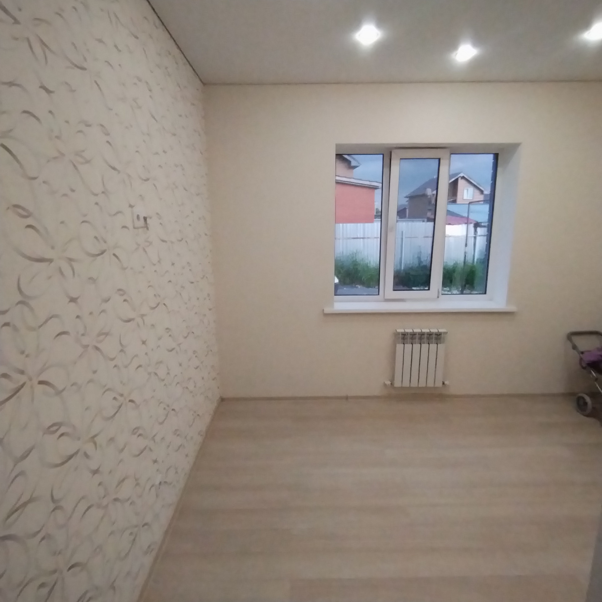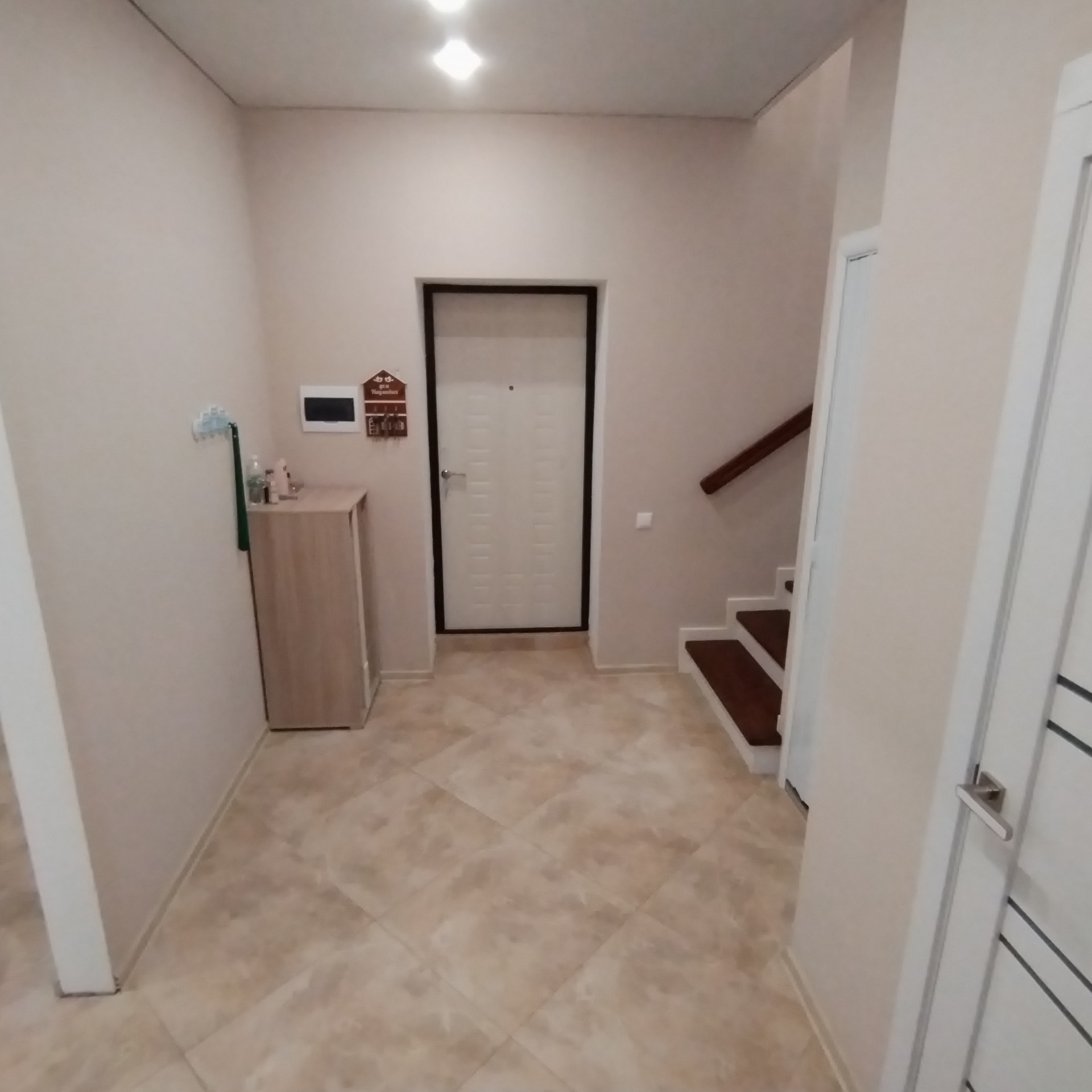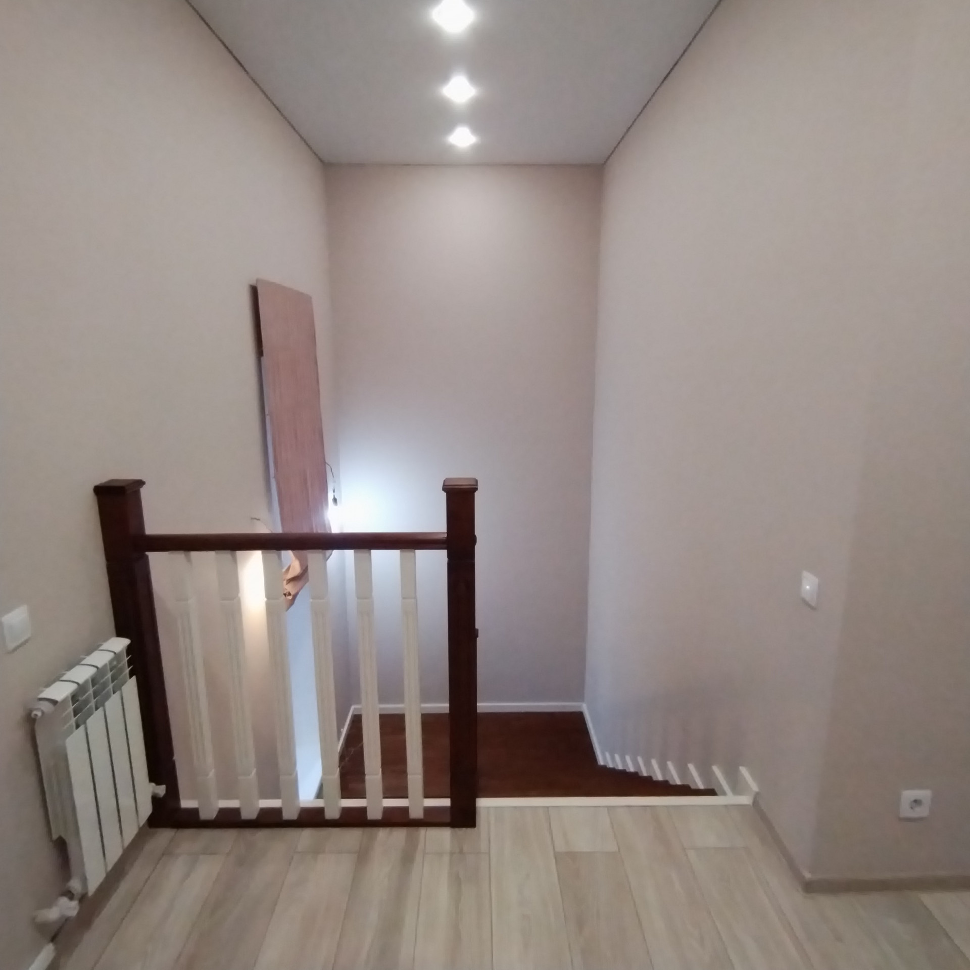 ОТДЕЛКА: гипсовая штукатурка, полусухая стяжка пола, разводка электрики по всему дому, «теплый пол» по всему этажу и в сан.узле на втором этаже, пластиковые окна, откосы и подоконники, радиаторы отопления под каждым окном, двухконтурный газовый котел, натяжные потолки.
