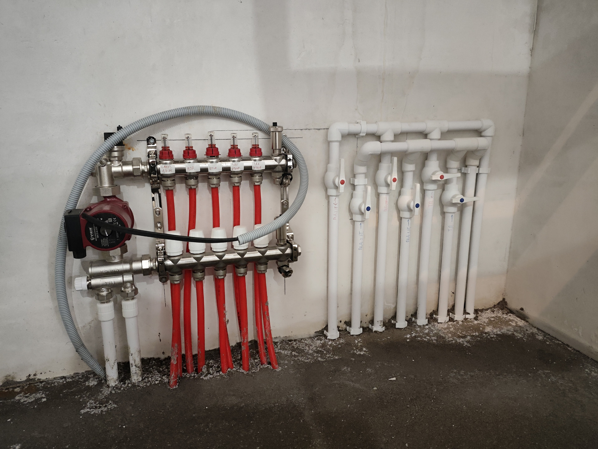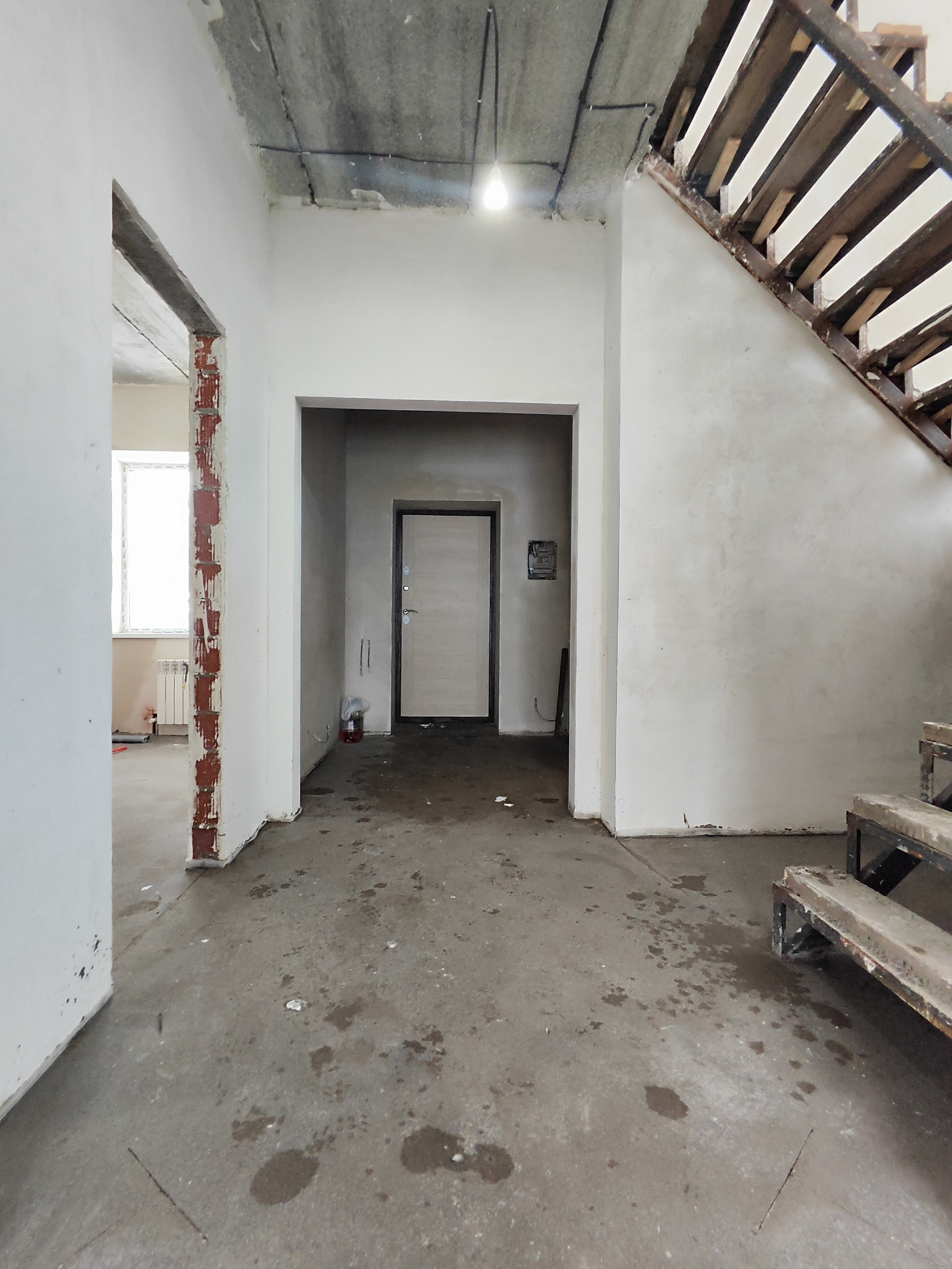 Фундамент ленточный с буровыми сваями через 1,5 метра, Стены – теплая керамика, задуваемая эковата 10 см., облицовочный кирпич. Внутри стены – теплая штукатурка, финишная шпаклевка, стены выровнены. Пол – обратная засыпка с тромбовкой песка, влагоизоляция, армированная бетонная плита, утеплитель пенополистерол, теплый пол и стяжка пола. Потолок – эковата 20 см. Чердак холодный обслуживаемый, доступ через люк в кладовой.