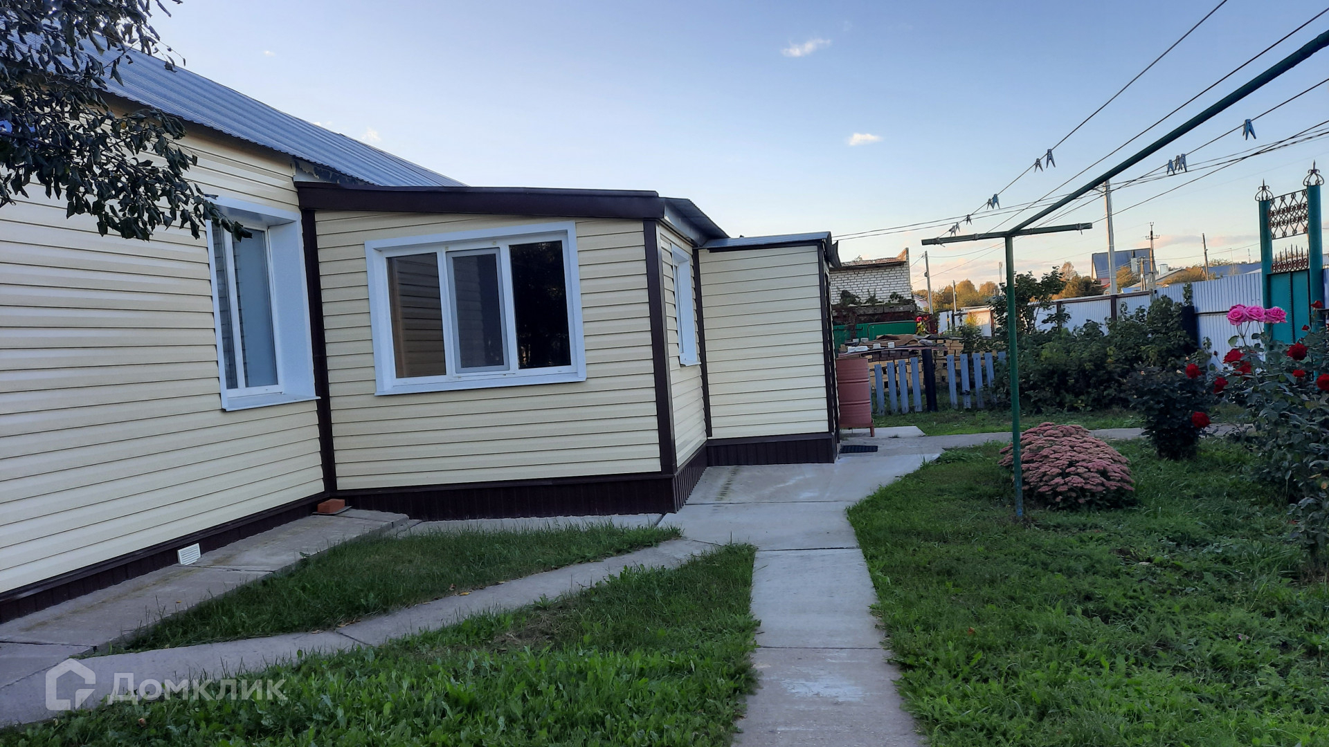Участок - 9 соток земли, благоустроенный, ровный, прямоугольной формы, по периметру огорожен забором из профнастила. Есть гараж, хоз.постройка и баня. Баня с газовым отоплением. Во дворе есть место для парковки и мойки авто.