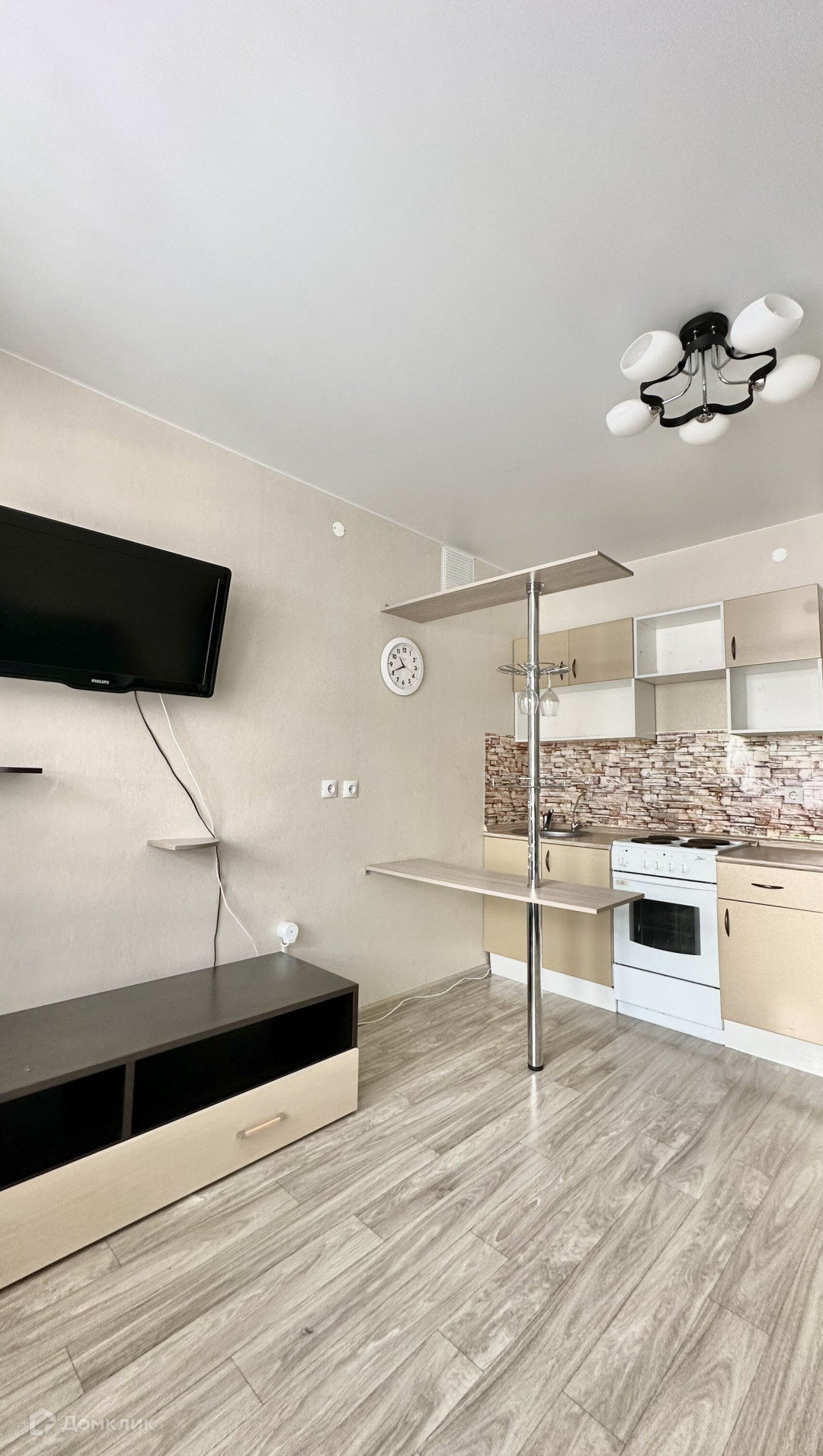 В квартире качественный косметический ремонт: на стенах обои, на полу линолеум, натяжные потолки; в ванной на стенах кафель, на полу кафель; балкон-лоджия застеклён;