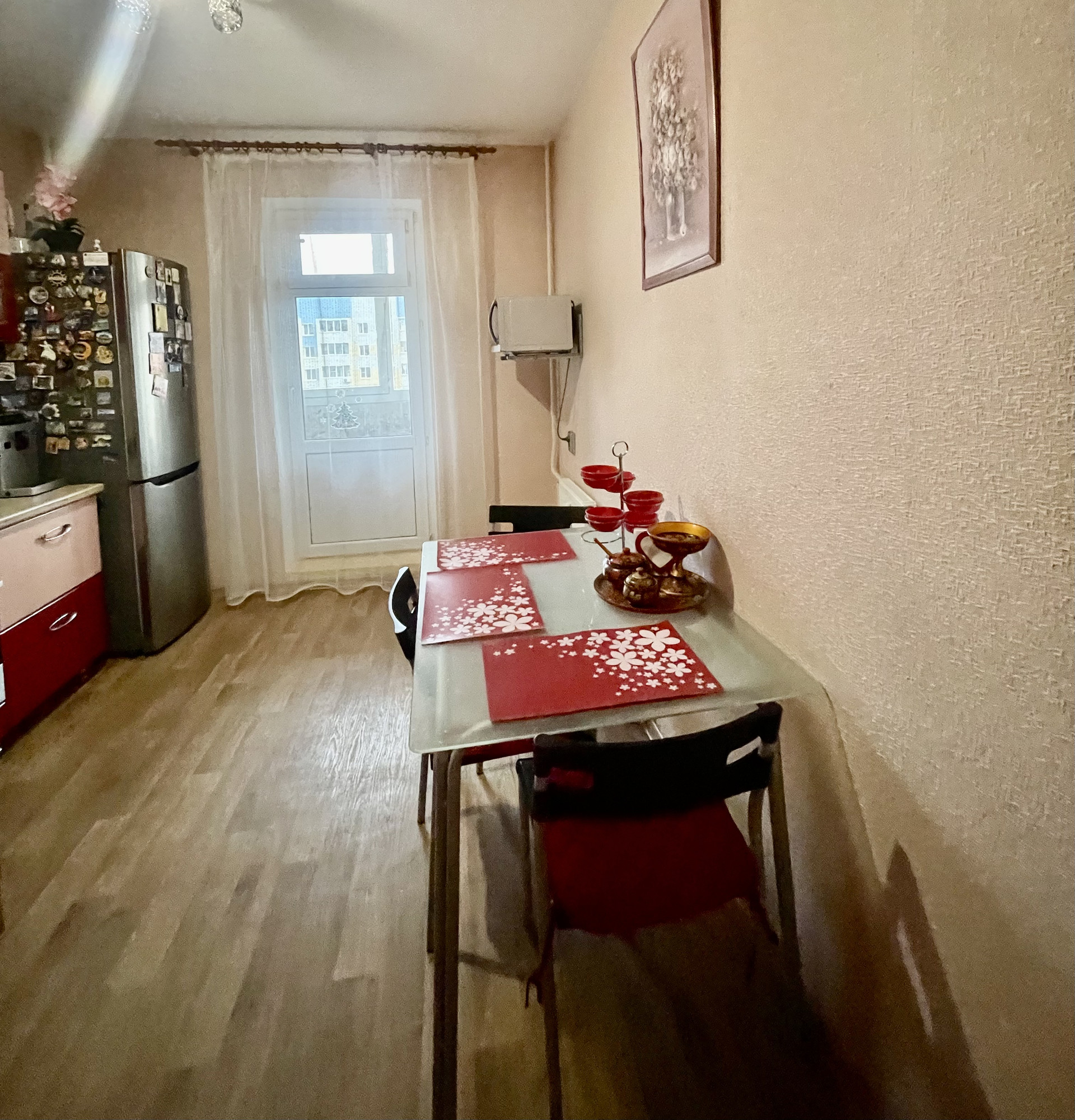 В квартире частично сделан ремонт, сан.узел и ванная в кафеле , остаётся кухонный гарнитур