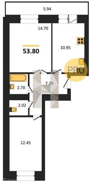 Арт. 55892464 Продам шикарную 2к квартиру в новом ЖК. Квартира расположена на 3 этаже десяти этажного дома. Площадь квартиры 53,80 м².