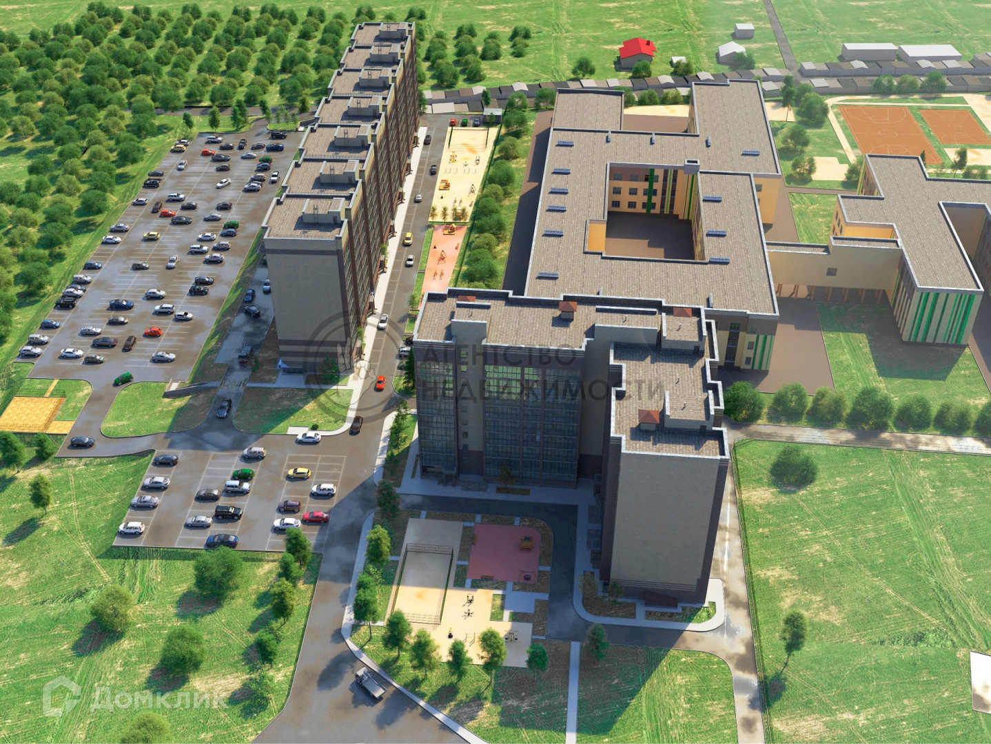 Рядом находятся лицей, гимназия, детский сад, торговый центр, супермаркеты, озеро, парки, больница, взрослая и детская поликлиники.