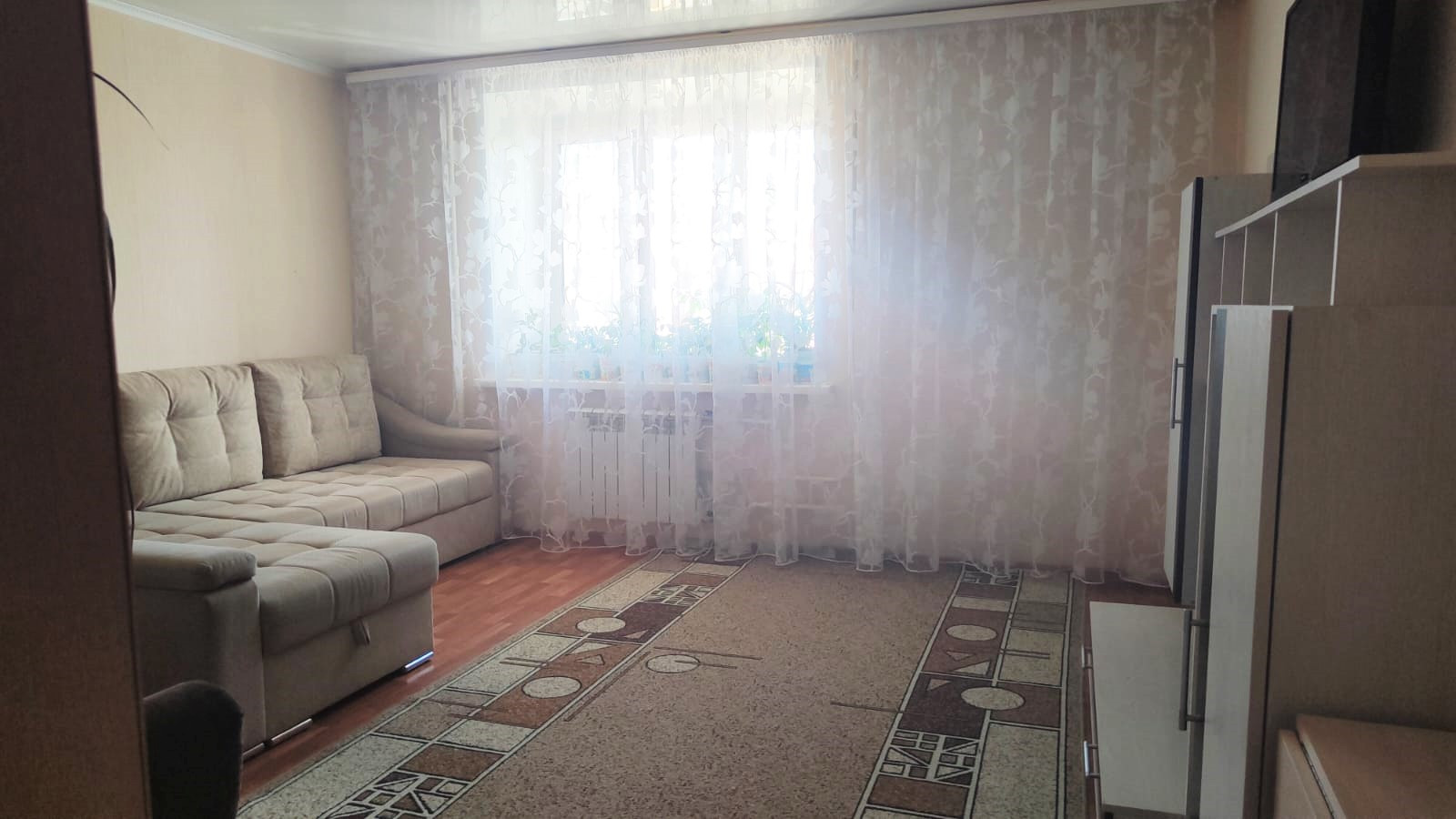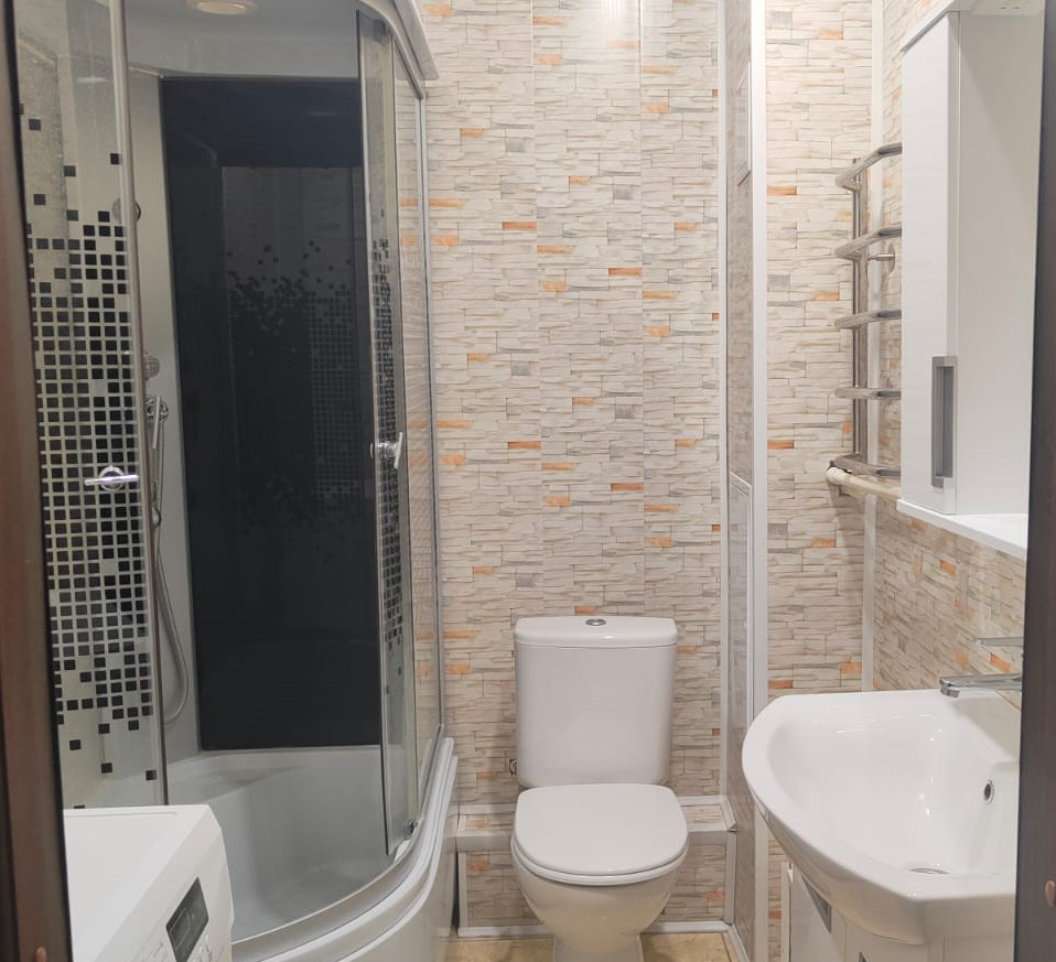 Квартира светлая, очень теплая с приятной аурой. Окна выходят на солнечную сторону – на улицу. В квартире установлены пластиковые окна, новые входная и межкомнатные двери, биметаллические батареи с регулятором тепла, потолки ровные - натяжные, стены оклеены обоями светлых тонов, на полу во всех комнатах качественный бытовой линолеум. Установлены приборы учета на все коммуникации. Сан. узел совмещен, отделка панели ПВХ, на полу кафель, установлена новая, современная дешевая кабина, новая сантехника. Имеется своя кладовая для хранения велосипеда, детской коляски.
